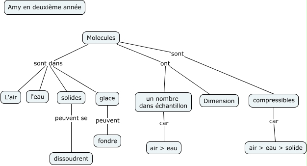 Cette carte de concepts créée avec IHMC CmapTools traite de: Amy molecule en 2 année, Molecules ont Dimension, Molecules sont dans l'eau, compressibles car air > eau > solide, solides peuvent se dissoudrent, glace peuvent fondre, un nombre dans échantillon car air > eau, Molecules sont compressibles, Molecules sont dans L'air, Molecules ont un nombre dans échantillon, Molecules sont dans solides, Molecules sont dans glace