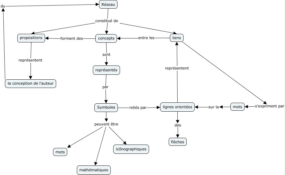 Cette carte de concepts créée avec IHMC CmapTools traite de: Le réseau, liens s'expriment par mots, Symboles peuvent être mathématiques, Symboles peuvent être mots, concepts forment des propositions, Réseau constitué de concepts, propositions représentent la conception de l'auteur, Réseau constitué de propositions, Symboles peuvent être icônographiques, mots sur la lignes orientées, la conception de l'auteur du Réseau, liens entre les concepts, lignes orientées des flèches, représentés par Symboles, Réseau constitué de liens, lignes orientées représentent liens, Symboles reliés par lignes orientées, concepts sont représentés