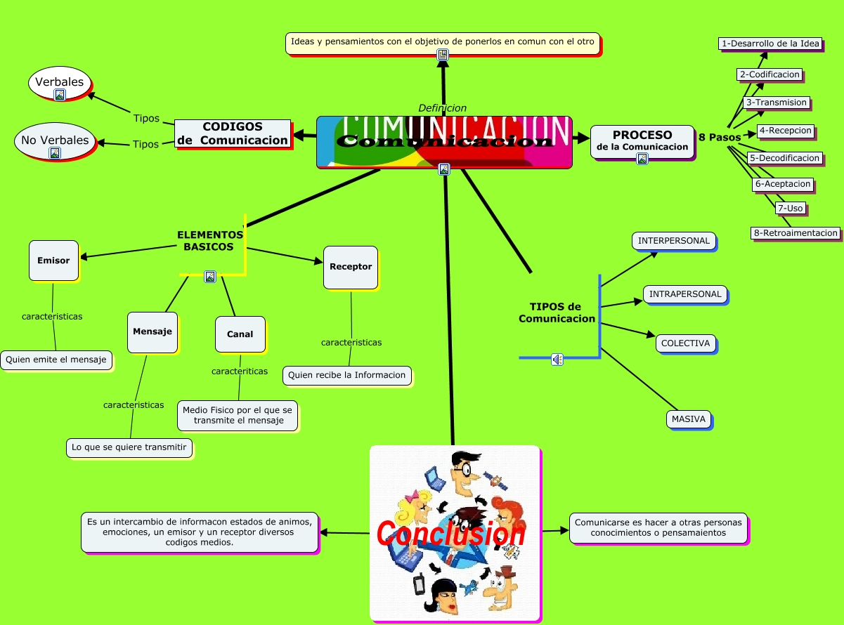 Este Cmap, tiene información relacionada con: Bertuzzi_AnaMaria_Cmap, Comunicacion TIPOS de Comunicacion INTERPERSONAL, Comunicacion ELEMENTOS BASICOS Mensaje, Canal caracteriticas Medio Fisico por el que se transmite el mensaje, CODIGOS de Comunicacion Tipos Verbales, PROCESO de la Comunicacion 8 Pasos 7-Uso, PROCESO de la Comunicacion 8 Pasos 5-Decodificacion, Comunicacion ELEMENTOS BASICOS Receptor, PROCESO de la Comunicacion 8 Pasos 8-Retroaimentacion, Comunicacion TIPOS de Comunicacion INTRAPERSONAL, Comunicacion Definicion Ideas y pensamientos con el objetivo de ponerlos en comun con el otro, PROCESO de la Comunicacion 8 Pasos 2-Codificacion, PROCESO de la Comunicacion 8 Pasos 4-Recepcion, Comunicacion Conclusion Comunicarse es hacer a otras personas conocimientos o pensamaientos, Comunicacion ELEMENTOS BASICOS Canal, Emisor caracteristicas Quien emite el mensaje, Comunicacion ???? PROCESO de la Comunicacion, Comunicacion TIPOS de Comunicacion MASIVA, Comunicacion ELEMENTOS BASICOS Emisor, Receptor caracteristicas Quien recibe la Informacion, Comunicacion TIPOS de Comunicacion COLECTIVA