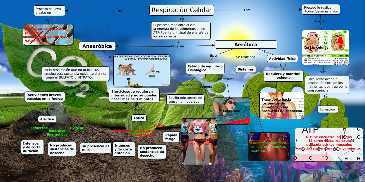 Este Cmap, tiene información relacionada con: RESPIRACIÓN CELULAR, Aeróbica Se relaciona Sistemas, El proceso mediante el cual la energía de los alimentos es en ATP(Fuente principal de energía de los seres vivos. Pede ser Anaeróbica, Respiración Celular Este Proceso lo realizan todos los seres vivos, Sistemas Los Trasnporta hacia los puntos de eliminación los productos de deshecho, Para llevar acabo el desdoblamiento de los nutrientes que trae como consecuencia La libreación, Actividades breves basadas en la fuerza Estos son Aláctica, Es la respiración que no utiliza O2. emplea otra sustancia oxidante distinta, como el SULFATO o NITRATO. Comprende Ejerciciosque requieren intensidad y no se pueden hacer más de 3 minutos, Estado de equilibrio Fisiológico Oxígeno Equilbriode aporte de consumo moderado, Respiración Celular Este Proceso se lleva a cabo en, Anaeróbica Es Es la respiración que no utiliza O2. emplea otra sustancia oxidante distinta, como el SULFATO o NITRATO., Proceso lo realizan todos los seres vivos A nivel De las células, Lática Esfuerzos Intensos y de corta duración, Aeróbica Es Actividad física, Lática Sustratos energéticos No producen sustancias de desecho, Respiración Celular Es El proceso mediante el cual la energía de los alimentos es en ATP(Fuente principal de energía de los seres vivos., Aláctica Sustratos Energéticos No producen sustancias de desecho, Aeróbica Es el Estado de equilibrio Fisiológico, Estado de equilibrio Fisiológico Cuando Esfuerzo de larga larga duración, Sistemas Los Circulatorio:abastecen de oxígeno y materias nutritivas., libreación De ATP:Se encuetra en todos los seres vivos. Molécula utilizada por los músculos cuando requiere mayor movimiento.
