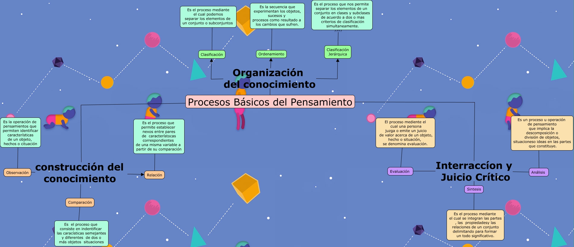 Este Cmap, tiene información relacionada con: procesos dario, Procesos Básicos del Pensamiento construcción del conocimiento Relación, Evaluación ???? El proceso mediente el cual una persona juzga o emite un juicio de valor acerca de un objeto, hecho o situación, se denomina evaluación., Clasificación ???? Es el proceso mediante el cual podemos separar los elementos de un conjunto o subconjuntos, Procesos Básicos del Pensamiento Interraccíon y Juicio Crítico Evaluación, Procesos Básicos del Pensamiento construcción del conocimiento Observación, Procesos Básicos del Pensamiento Interraccíon y Juicio Crítico Sintesis, Ordenamiento ???? Es la secuencia que experimentan los objetos, sucesos y procesos como resultado a los cambios que sufren., Procesos Básicos del Pensamiento construcción del conocimiento Comparación, Procesos Básicos del Pensamiento Organización del conocimiento Ordenamiento, Observación ???? Es la operación de pensamientos que permiten identificar características de un objeto, hechos o cituación, Análisis ???? Es un proceso u operación de pensamiento que implica la descomposición o división de objetos, situacioneso ideas en las partes que constituye., Procesos Básicos del Pensamiento Organización del conocimiento Clasificación Jerárquica, Comparación ???? Es el proceso que consiste en indentificar las caracísticas semejantes y diferentes de dos o más objetos situaciones, Relación ???? Es el proceso que permite establecer nexos entre pares de característocas correspondientes de una misma variable a partir de su comparación, Procesos Básicos del Pensamiento Interraccíon y Juicio Crítico Análisis, Clasificación Jerárquica ???? Es el proceso que nos permite separar los elementos de un conjunto en clases y subclases de acuerdo a dos o mas criterios de clasificación simultaneamente., Procesos Básicos del Pensamiento Organización del conocimiento Clasificación, Sintesis ???? Es el proceso mediante el cual se integran las partes , las propiedadesy las relaciones de un conjunto delimitando para formar un todo significativo.