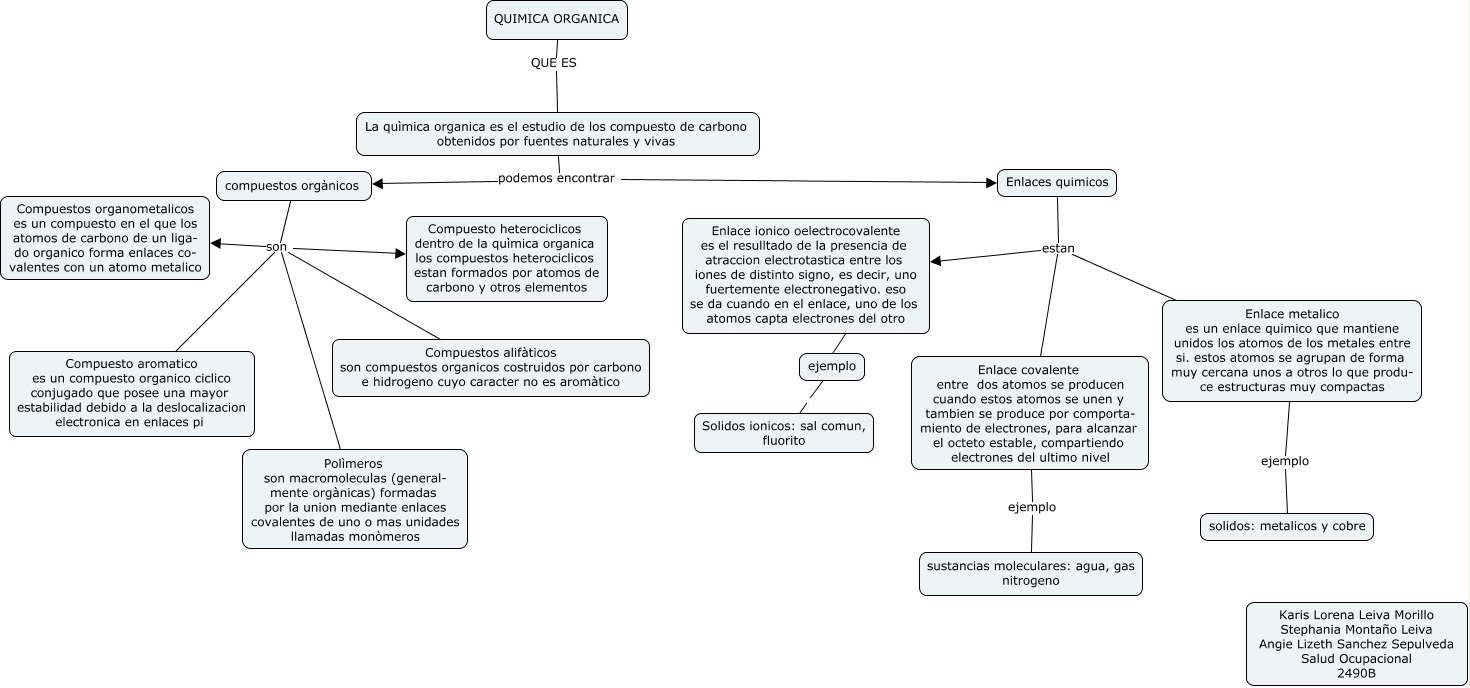 Este Cmap, tiene información relacionada con: Sin Título 3, ejemplo Solidos ionicos: sal comun, fluorito, Enlace metalico es un enlace quimico que mantiene unidos los atomos de los metales entre si. estos atomos se agrupan de forma muy cercana unos a otros lo que produ- ce estructuras muy compactas ejemplo solidos: metalicos y cobre, La quìmica organica es el estudio de los compuesto de carbono obtenidos por fuentes naturales y vivas podemos encontrar Enlaces quimicos, compuestos orgànicos son Compuestos alifàticos son compuestos organicos costruidos por carbono e hidrogeno cuyo caracter no es aromàtico, compuestos orgànicos son Polìmeros son macromoleculas (general- mente orgànicas) formadas por la union mediante enlaces covalentes de uno o mas unidades llamadas monòmeros, QUIMICA ORGANICA QUE ES La quìmica organica es el estudio de los compuesto de carbono obtenidos por fuentes naturales y vivas, La quìmica organica es el estudio de los compuesto de carbono obtenidos por fuentes naturales y vivas podemos encontrar compuestos orgànicos, Enlace covalente entre dos atomos se producen cuando estos atomos se unen y tambien se produce por comporta- miento de electrones, para alcanzar el octeto estable, compartiendo electrones del ultimo nivel ejemplo sustancias moleculares: agua, gas nitrogeno, Enlaces quimicos estan Enlace ionico oelectrocovalente es el resulltado de la presencia de atraccion electrotastica entre los iones de distinto signo, es decir, uno fuertemente electronegativo. eso se da cuando en el enlace, uno de los atomos capta electrones del otro, compuestos orgànicos son Compuesto heterociclicos dentro de la quìmica organica los compuestos heterociclicos estan formados por atomos de carbono y otros elementos, Enlaces quimicos estan Enlace metalico es un enlace quimico que mantiene unidos los atomos de los metales entre si. estos atomos se agrupan de forma muy cercana unos a otros lo que produ- ce estructuras muy compactas, compuestos orgànicos son Compuesto aromatico es un compuesto organico ciclico conjugado que posee una mayor estabilidad debido a la deslocalizacion electronica en enlaces pi, compuestos orgànicos son Compuestos organometalicos es un compuesto en el que los atomos de carbono de un liga- do organico forma enlaces co- valentes con un atomo metalico, Enlace ionico oelectrocovalente es el resulltado de la presencia de atraccion electrotastica entre los iones de distinto signo, es decir, uno fuertemente electronegativo. eso se da cuando en el enlace, uno de los atomos capta electrones del otro ???? ejemplo, Enlaces quimicos estan Enlace covalente entre dos atomos se producen cuando estos atomos se unen y tambien se produce por comporta- miento de electrones, para alcanzar el octeto estable, compartiendo electrones del ultimo nivel
