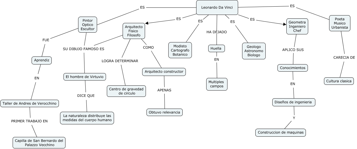 Este Cmap, tiene información relacionada con: Etapa 1, Huella EN Multiples campos, Leonardo Da Vinci ES Modisto Cartografo Botanico, Pintor Optico Escultor FUE Aprendiz, Leonardo Da Vinci ES Poeta Musico Urbanista, Pintor Optico Escultor SU DIBUJO FAMOSO ES El hombre de Virtuvio, Diseños de ingenieria Y Construccion de maquinas, Arquitecto Fisico Filosofo LOGRA DETERMINAR Centro de gravedad de circulo, Arquitecto Fisico Filosofo COMO Arquitecto constructor, Leonardo Da Vinci ES Geometra Ingeniero Chef, Poeta Musico Urbanista CARECIA DE Cultura clasica, Conocimientos EN Diseños de ingenieria, Arquitecto constructor APENAS Obtuvo relevancia, Leonardo Da Vinci ES Arquitecto Fisico Filosofo, Leonardo Da Vinci ES Geologo Astronomo Biologo, Leonardo Da Vinci ES Pintor Optico Escultor, Geometra Ingeniero Chef APLICO SUS Conocimientos, Arquitecto Fisico Filosofo SU DIBUJO FAMOSO ES El hombre de Virtuvio, Leonardo Da Vinci HA DEJADO Huella, Taller de Andres de Verocchino PRIMER TRABAJO EN Capilla de San Bernardo del Palazzo Vecchino, Aprendiz EN Taller de Andres de Verocchino