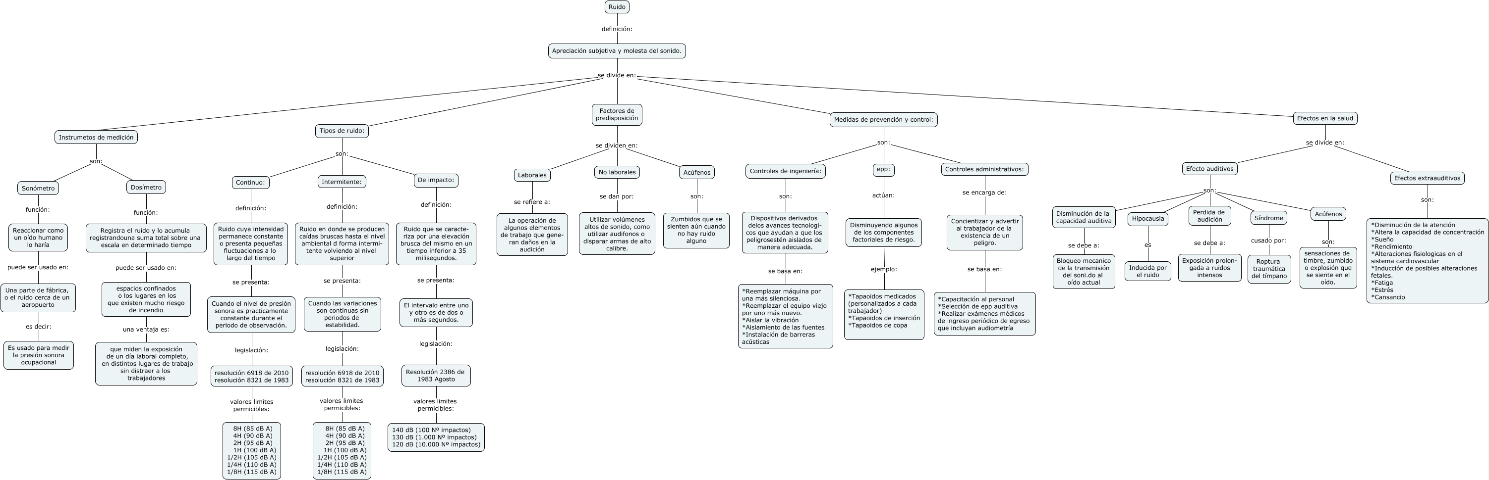 Este Cmap, tiene información relacionada con: Fase 1_Ruido_Condiciones del Ambiente de Trabajo, resolución 6918 de 2010 resolución 8321 de 1983 valores limites permicibles: 8H (85 dB A) 4H (90 dB A) 2H (95 dB A) 1H (100 dB A) 1/2H (105 dB A) 1/4H (110 dB A) 1/8H (115 dB A), resolución 6918 de 2010 resolución 8321 de 1983 valores limites permicibles: 8H (85 dB A) 4H (90 dB A) 2H (95 dB A) 1H (100 dB A) 1/2H (105 dB A) 1/4H (110 dB A) 1/8H (115 dB A), Sonómetro función: Reaccionar como un oído humano lo haría, De impacto: definición: Ruido que se caracte- riza por una elevación brusca del mismo en un tiempo inferior a 35 milisegundos., Hipocausia es Inducida por el ruido, Apreciación subjetiva y molesta del sonido. se divide en: Medidas de prevención y control:, Efectos en la salud se divide en: Efectos extraauditivos, Tipos de ruido: son: De impacto:, Ruido que se caracte- riza por una elevación brusca del mismo en un tiempo inferior a 35 milisegundos. se presenta: El intervalo entre uno y otro es de dos o más segundos., Disminución de la capacidad auditiva se debe a: Bloqueo mecanico de la transmisión del soni.do al oído actual, Intermitente: definición: Ruido en donde se producen caídas bruscas hasta el nivel ambiental d forma intermi- tente volviendo al nivel superior, Registra el ruido y lo acumula registrandouna suma total sobre una escala en determinado tiempo puede ser usado en: espacios confinados o los lugares en los que existen mucho riesgo de incendio, Ruido cuya intensidad permanece constante o presenta pequeñas fluctuaciones a lo largo del tiempo se presenta: Cuando el nivel de presión sonora es practicamente constante durante el periodo de observación., Apreciación subjetiva y molesta del sonido. se divide en: Instrumetos de medición, Disminuyendo algunos de los componentes factoriales de riesgo. ejemplo: *Tapaoidos medicados (personalizados a cada trabajador) *Tapaoidos de inserción *Tapaoidos de copa, Factores de predisposición se dividen en: No laborales, Perdida de audición se debe a: Exposición prolon- gada a ruidos intensos, Dosímetro función: Registra el ruido y lo acumula registrandouna suma total sobre una escala en determinado tiempo, Controles de ingeniería: son: Dispositivos derivados delos avances tecnologi- cos que ayudan a que los peligrosestén aislados de manera adecuada., Dispositivos derivados delos avances tecnologi- cos que ayudan a que los peligrosestén aislados de manera adecuada. se basa en: *Reemplazar máquina por una más silenciosa. *Reemplazar el equipo viejo por uno más nuevo. *Aislar la vibración *Aislamiento de las fuentes *Instalación de barreras acústicas