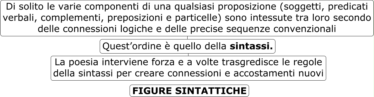 Questa Cmap, creata con IHMC CmapTools, contiene informazioni relative a: 55, Di solito le varie componenti di una qualsiasi proposizione (soggetti, predicati verbali, complementi, preposizioni e particelle) sono intessute tra loro secondo delle connessioni logiche e delle precise sequenze convenzionali ???? Quest’ordine è quello della sintassi., Quest’ordine è quello della sintassi. ???? La poesia interviene forza e a volte trasgredisce le regole della sintassi per creare connessioni e accostamenti nuovi
