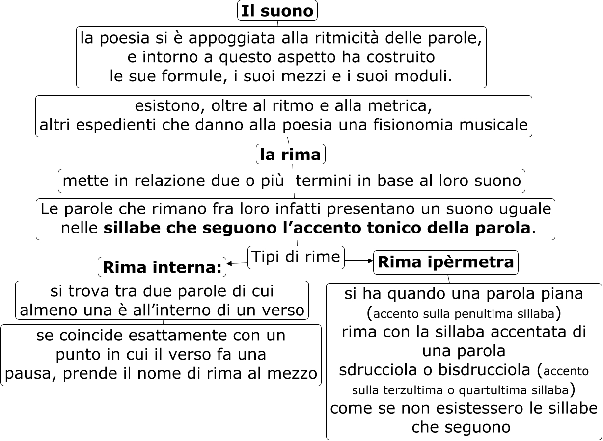 Questa Cmap, creata con IHMC CmapTools, contiene informazioni relative a: 24 antologia i suoni f.26, Rima ipèrmetra ???? si ha quando una parola piana (accento sulla penultima sillaba) rima con la sillaba accentata di una parola sdrucciola o bisdrucciola (accento sulla terzultima o quartultima sillaba) come se non esistessero le sillabe che seguono, esistono, oltre al ritmo e alla metrica, altri espedienti che danno alla poesia una fisionomia musicale ???? la rima, la rima ???? mette in relazione due o più termini in base al loro suono, mette in relazione due o più termini in base al loro suono ???? Le parole che rimano fra loro infatti presentano un suono uguale nelle sillabe che seguono l’accento tonico della parola., Tipi di rime ???? Rima ipèrmetra, Il suono ???? la poesia si è appoggiata alla ritmicità delle parole, e intorno a questo aspetto ha costruito le sue formule, i suoi mezzi e i suoi moduli., Tipi di rime ???? Rima interna:, Le parole che rimano fra loro infatti presentano un suono uguale nelle sillabe che seguono l’accento tonico della parola. ???? Tipi di rime, Rima interna: ???? si trova tra due parole di cui almeno una è all’interno di un verso, si trova tra due parole di cui almeno una è all’interno di un verso ???? se coincide esattamente con un punto in cui il verso fa una pausa, prende il nome di rima al mezzo, la poesia si è appoggiata alla ritmicità delle parole, e intorno a questo aspetto ha costruito le sue formule, i suoi mezzi e i suoi moduli. ???? esistono, oltre al ritmo e alla metrica, altri espedienti che danno alla poesia una fisionomia musicale