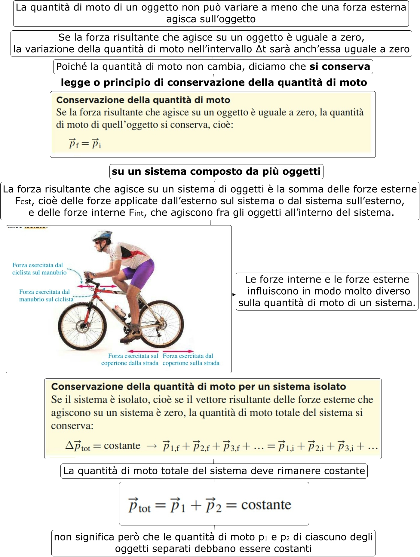 Questa Cmap, creata con IHMC CmapTools, contiene informazioni relative a: lavoro f.303, ???? non significa però che le quantità di moto p1 e p2 di ciascuno degli oggetti separati debbano essere costanti, La forza risultante che agisce su un sistema di oggetti è la somma delle forze esterne Fest, cioè delle forze applicate dall’esterno sul sistema o dal sistema sull’esterno, e delle forze interne Fint, che agiscono fra gli oggetti all’interno del sistema. ????, Poiché la quantità di moto non cambia, diciamo che si conserva legge o principio di conservazione della quantità di moto, La quantità di moto totale del sistema deve rimanere costante ????, ???? Le forze interne e le forze esterne influiscono in modo molto diverso sulla quantità di moto di un sistema., ???? La quantità di moto totale del sistema deve rimanere costante, Se la forza risultante che agisce su un oggetto è uguale a zero, la variazione della quantità di moto nell’intervallo ∆t sarà anch’essa uguale a zero ???? Poiché la quantità di moto non cambia, diciamo che si conserva, La quantità di moto di un oggetto non può variare a meno che una forza esterna agisca sull’oggetto ???? Se la forza risultante che agisce su un oggetto è uguale a zero, la variazione della quantità di moto nell’intervallo ∆t sarà anch’essa uguale a zero, su un sistema composto da più oggetti ???? La forza risultante che agisce su un sistema di oggetti è la somma delle forze esterne Fest, cioè delle forze applicate dall’esterno sul sistema o dal sistema sull’esterno, e delle forze interne Fint, che agiscono fra gli oggetti all’interno del sistema.