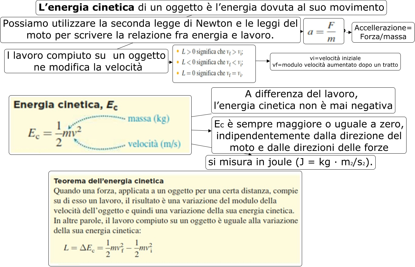 Questa Cmap, creata con IHMC CmapTools, contiene informazioni relative a: lavoro f.288, ???? Ec è sempre maggiore o uguale a zero, indipendentemente dalla direzione del moto e dalle direzioni delle forze, ???? vi=velocità iniziale vf=modulo velocità aumentato dopo un tratto, L’energia cinetica di un oggetto è l’energia dovuta al suo movimento ???? Possiamo utilizzare la seconda legge di Newton e le leggi del moto per scrivere la relazione fra energia e lavoro., Possiamo utilizzare la seconda legge di Newton e le leggi del moto per scrivere la relazione fra energia e lavoro. ????, Possiamo utilizzare la seconda legge di Newton e le leggi del moto per scrivere la relazione fra energia e lavoro. ???? l lavoro compiuto su un oggetto ne modifica la velocità, l lavoro compiuto su un oggetto ne modifica la velocità ????, A differenza del lavoro, l’energia cinetica non è mai negativa ????, ???? si misura in joule (J = kg · m2/s2)., ???? Accellerazione= Forza/massa