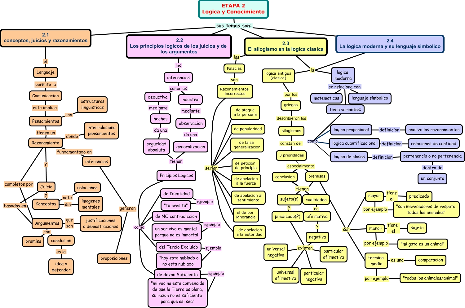 Este Cmap, tiene información relacionada con: conocimiento etapa 2, menor tiene el sujeto, de Razon Suficiente ejemplo "mi vecina esta convencida de que la Tierra es plana, su razon no es suficiente para que asi sea", Pensamientos son estructuras linguisticas, Razonamientos incorrectos serian el de por ignorancia, Razonamiento completos por Argumentos, ETAPA 2 Logica y Conocimiento sus temas son: 2.2 Los principios logicos de los juicios y de los argumentos, logica de clases definicion pertenencia o no pertenencia, generalizacion tienen Pricipios Logicos, conclusion tienen cualidades, Razonamiento fundamentado en inferencias, menor por ejemplo "mi gato es un animal", cualidades es afirmativa, Razonamientos incorrectos serian de apelacion al sentimiento, Razonamientos incorrectos serian de peticion de principio, predicado(P) existen universal negativa, logica proposional definicion analiza los razonamientos, Conceptos sin imagenes mentales, deductiva mediante hechos, ETAPA 2 Logica y Conocimiento sus temas son: 2.1 conceptos, juicios y razonamientos, sujeto(s) y predicado(P)