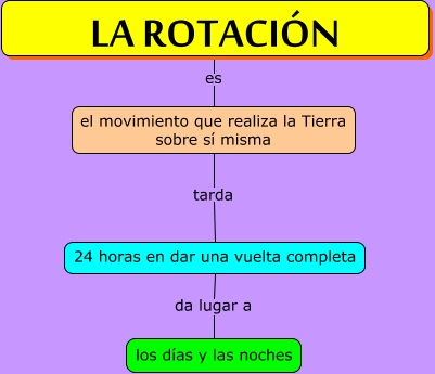 Este Cmap, tiene información relacionada con: La rotación, 24 horas en dar una vuelta completa da lugar a los días y las noches, el movimiento que realiza la Tierra sobre sí misma tarda 24 horas en dar una vuelta completa, LA ROTACIÓN es el movimiento que realiza la Tierra sobre sí misma