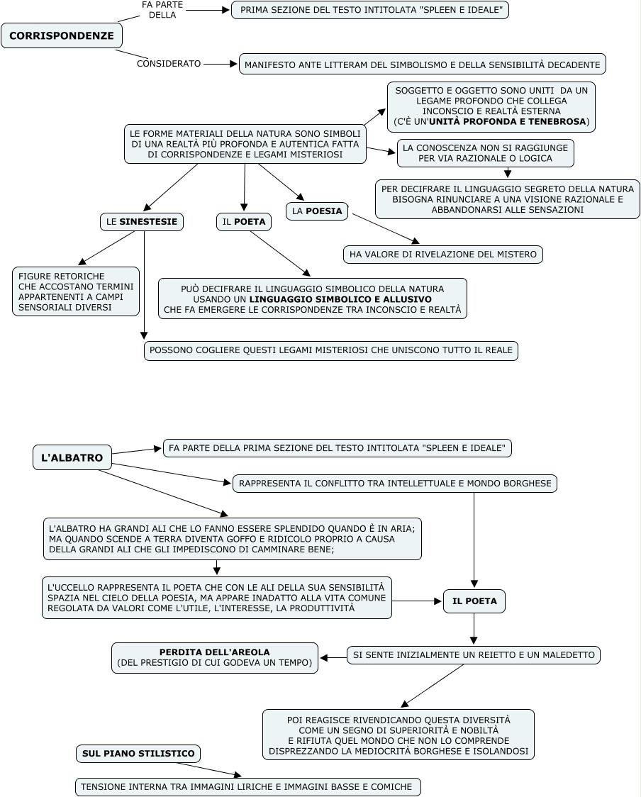 Questa Cmap, creata con IHMC CmapTools, contiene informazioni relative a: BAUDELAIRE 2, SUL PIANO STILISTICO ???? TENSIONE INTERNA TRA IMMAGINI LIRICHE E IMMAGINI BASSE E COMICHE, LE FORME MATERIALI DELLA NATURA SONO SIMBOLI DI UNA REALTÀ PIÙ PROFONDA E AUTENTICA FATTA DI CORRISPONDENZE E LEGAMI MISTERIOSI ???? LA CONOSCENZA NON SI RAGGIUNGE PER VIA RAZIONALE O LOGICA, LA POESIA ???? HA VALORE DI RIVELAZIONE DEL MISTERO, IL POETA ???? SI SENTE INIZIALMENTE UN REIETTO E UN MALEDETTO, SI SENTE INIZIALMENTE UN REIETTO E UN MALEDETTO ???? PERDITA DELL'AREOLA (DEL PRESTIGIO DI CUI GODEVA UN TEMPO), LE FORME MATERIALI DELLA NATURA SONO SIMBOLI DI UNA REALTÀ PIÙ PROFONDA E AUTENTICA FATTA DI CORRISPONDENZE E LEGAMI MISTERIOSI ???? LA POESIA, LE FORME MATERIALI DELLA NATURA SONO SIMBOLI DI UNA REALTÀ PIÙ PROFONDA E AUTENTICA FATTA DI CORRISPONDENZE E LEGAMI MISTERIOSI ???? LE SINESTESIE, LE SINESTESIE ???? POSSONO COGLIERE QUESTI LEGAMI MISTERIOSI CHE UNISCONO TUTTO IL REALE, CORRISPONDENZE CONSIDERATO MANIFESTO ANTE LITTERAM DEL SIMBOLISMO E DELLA SENSIBILITÀ DECADENTE, L'ALBATRO ???? L'ALBATRO HA GRANDI ALI CHE LO FANNO ESSERE SPLENDIDO QUANDO È IN ARIA; MA QUANDO SCENDE A TERRA DIVENTA GOFFO E RIDICOLO PROPRIO A CAUSA DELLA GRANDI ALI CHE GLI IMPEDISCONO DI CAMMINARE BENE;, L'ALBATRO HA GRANDI ALI CHE LO FANNO ESSERE SPLENDIDO QUANDO È IN ARIA; MA QUANDO SCENDE A TERRA DIVENTA GOFFO E RIDICOLO PROPRIO A CAUSA DELLA GRANDI ALI CHE GLI IMPEDISCONO DI CAMMINARE BENE; ???? L'UCCELLO RAPPRESENTA IL POETA CHE CON LE ALI DELLA SUA SENSIBILITÀ SPAZIA NEL CIELO DELLA POESIA, MA APPARE INADATTO ALLA VITA COMUNE REGOLATA DA VALORI COME L'UTILE, L'INTERESSE, LA PRODUTTIVITÀ, L'ALBATRO ???? RAPPRESENTA IL CONFLITTO TRA INTELLETTUALE E MONDO BORGHESE, LA CONOSCENZA NON SI RAGGIUNGE PER VIA RAZIONALE O LOGICA ???? PER DECIFRARE IL LINGUAGGIO SEGRETO DELLA NATURA BISOGNA RINUNCIARE A UNA VISIONE RAZIONALE E ABBANDONARSI ALLE SENSAZIONI, L'UCCELLO RAPPRESENTA IL POETA CHE CON LE ALI DELLA SUA SENSIBILITÀ SPAZIA NEL CIELO DELLA POESIA, MA APPARE INADATTO ALLA VITA COMUNE REGOLATA DA VALORI COME L'UTILE, L'INTERESSE, LA PRODUTTIVITÀ ???? IL POETA, LE SINESTESIE ???? FIGURE RETORICHE CHE ACCOSTANO TERMINI APPARTENENTI A CAMPI SENSORIALI DIVERSI, LE FORME MATERIALI DELLA NATURA SONO SIMBOLI DI UNA REALTÀ PIÙ PROFONDA E AUTENTICA FATTA DI CORRISPONDENZE E LEGAMI MISTERIOSI ???? IL POETA, L'ALBATRO ???? FA PARTE DELLA PRIMA SEZIONE DEL TESTO INTITOLATA "SPLEEN E IDEALE", CORRISPONDENZE FA PARTE DELLA PRIMA SEZIONE DEL TESTO INTITOLATA "SPLEEN E IDEALE", IL POETA ???? PUÒ DECIFRARE IL LINGUAGGIO SIMBOLICO DELLA NATURA USANDO UN LINGUAGGIO SIMBOLICO E ALLUSIVO CHE FA EMERGERE LE CORRISPONDENZE TRA INCONSCIO E REALTÀ, RAPPRESENTA IL CONFLITTO TRA INTELLETTUALE E MONDO BORGHESE ???? IL POETA