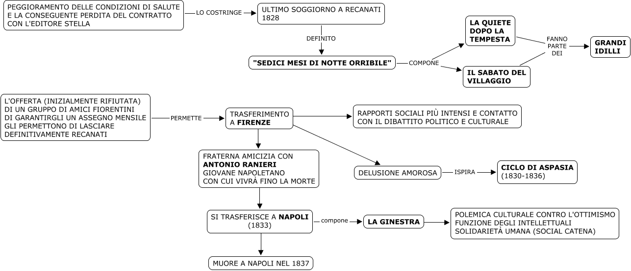 Questa Cmap, creata con IHMC CmapTools, contiene informazioni relative a: leopardi - la vita 3, SI TRASFERISCE A NAPOLI (1833) compone LA GINESTRA, TRASFERIMENTO A FIRENZE ???? FRATERNA AMICIZIA CON ANTONIO RANIERI GIOVANE NAPOLETANO CON CUI VIVRÀ FINO LA MORTE, TRASFERIMENTO A FIRENZE ???? RAPPORTI SOCIALI PIÙ INTENSI E CONTATTO CON IL DIBATTITO POLITICO E CULTURALE, FRATERNA AMICIZIA CON ANTONIO RANIERI GIOVANE NAPOLETANO CON CUI VIVRÀ FINO LA MORTE ???? SI TRASFERISCE A NAPOLI (1833), "SEDICI MESI DI NOTTE ORRIBILE" COMPONE IL SABATO DEL VILLAGGIO, "SEDICI MESI DI NOTTE ORRIBILE" COMPONE LA QUIETE DOPO LA TEMPESTA, LA GINESTRA ???? POLEMICA CULTURALE CONTRO L'OTTIMISMO FUNZIONE DEGLI INTELLETTUALI SOLIDARIETÀ UMANA (SOCIAL CATENA), LA QUIETE DOPO LA TEMPESTA FANNO PARTE DEI GRANDI IDILLI, TRASFERIMENTO A FIRENZE ???? DELUSIONE AMOROSA, DELUSIONE AMOROSA ISPIRA CICLO DI ASPASIA (1830-1836), SI TRASFERISCE A NAPOLI (1833) ???? MUORE A NAPOLI NEL 1837, IL SABATO DEL VILLAGGIO FANNO PARTE DEI GRANDI IDILLI, ULTIMO SOGGIORNO A RECANATI 1828 DEFINITO "SEDICI MESI DI NOTTE ORRIBILE", PEGGIORAMENTO DELLE CONDIZIONI DI SALUTE E LA CONSEGUENTE PERDITA DEL CONTRATTO CON L'EDITORE STELLA LO COSTRINGE ULTIMO SOGGIORNO A RECANATI 1828, L'OFFERTA (INIZIALMENTE RIFIUTATA) DI UN GRUPPO DI AMICI FIORENTINI DI GARANTIRGLI UN ASSEGNO MENSILE GLI PERMETTONO DI LASCIARE DEFINITIVAMENTE RECANATI PERMETTE TRASFERIMENTO A FIRENZE