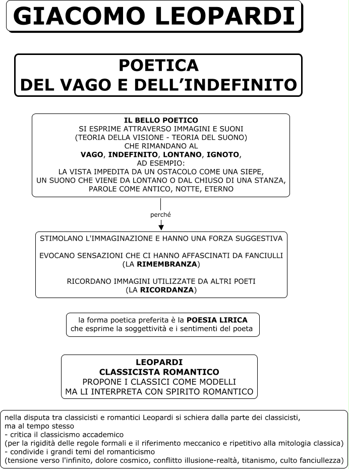 Questa Cmap, creata con IHMC CmapTools, contiene informazioni relative a: LEOPARDI poetica, IL BELLO POETICO SI ESPRIME ATTRAVERSO IMMAGINI E SUONI (TEORIA DELLA VISIONE - TEORIA DEL SUONO) CHE RIMANDANO AL VAGO, INDEFINITO, LONTANO, IGNOTO, AD ESEMPIO: LA VISTA IMPEDITA DA UN OSTACOLO COME UNA SIEPE, UN SUONO CHE VIENE DA LONTANO O DAL CHIUSO DI UNA STANZA, PAROLE COME ANTICO, NOTTE, ETERNO perché STIMOLANO L'IMMAGINAZIONE E HANNO UNA FORZA SUGGESTIVA EVOCANO SENSAZIONI CHE CI HANNO AFFASCINATI DA FANCIULLI (LA RIMEMBRANZA) RICORDANO IMMAGINI UTILIZZATE DA ALTRI POETI (LA RICORDANZA)