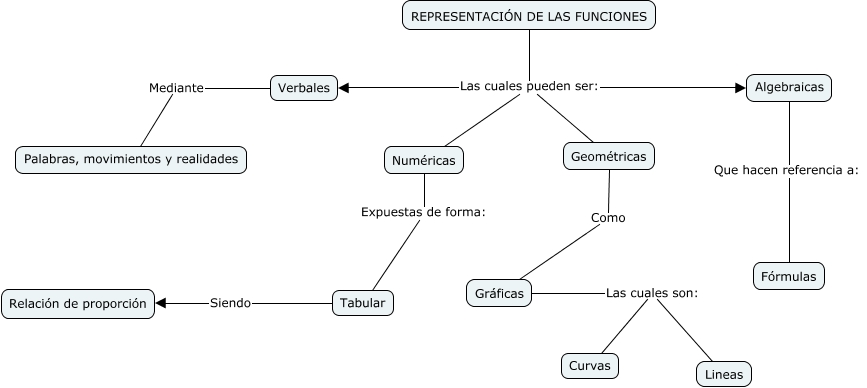 Este Cmap, tiene información relacionada con: Representación de funciones, REPRESENTACIÓN DE LAS FUNCIONES Las cuales pueden ser: Verbales, Geométricas Como Gráficas, REPRESENTACIÓN DE LAS FUNCIONES Las cuales pueden ser: Algebraicas, Numéricas Expuestas de forma: Tabular, Gráficas Las cuales son: Curvas, REPRESENTACIÓN DE LAS FUNCIONES Las cuales pueden ser: Numéricas, REPRESENTACIÓN DE LAS FUNCIONES Las cuales pueden ser: Geométricas, Verbales Mediante Palabras, movimientos y realidades, Tabular Siendo Relación de proporción, Algebraicas Que hacen referencia a: Fórmulas, Gráficas Las cuales son: Lineas