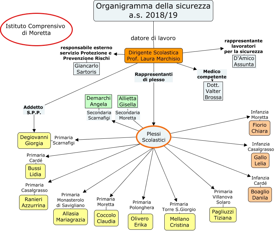 Questa Cmap, creata con IHMC CmapTools, contiene informazioni relative a: Organigramma sicurezza, Plessi Scolastici Infanzia Casalgrasso Gallo Lelia, Dirigente Scolastica Prof. Laura Marchisio Medico competente Dott. Valter Brossa, Plessi Scolastici Primaria Torre S.Giorgio Mellano Cristina, Plessi Scolastici Primaria Villanova Solaro Pagliuzzi Tiziana, Plessi Scolastici Secondaria Scarnafigi Demarchi Angela, Plessi Scolastici Primaria Casalgrasso Ranieri Azzurrina, Dirigente Scolastica Prof. Laura Marchisio rappresentante lavoratori per la sicurezza D'Amico Assunta, Plessi Scolastici Infanzia Cardé Boaglio Danila, Plessi Scolastici Secondaria Moretta Allietta Gisella, Dirigente Scolastica Prof. Laura Marchisio Addetto S.P.P. Degiovanni Giorgia, Dirigente Scolastica Prof. Laura Marchisio responsabile esterno servizio Protezione e Prevenzione Rischi Giancarlo Sartoris, Plessi Scolastici Primaria Moretta Coccolo Claudia, Plessi Scolastici Primaria Scarnafigi Degiovanni Giorgia, Plessi Scolastici Primaria Polonghera Olivero Erika, Organigramma della sicurezza a.s. 2018/19 datore di lavoro Dirigente Scolastica Prof. Laura Marchisio, Plessi Scolastici Infanzia Moretta Fiorio Chiara, Plessi Scolastici Primaria Monasterolo di Savigliano Allasia Mariagrazia, Plessi Scolastici Primaria Cardé Bussi Lidia