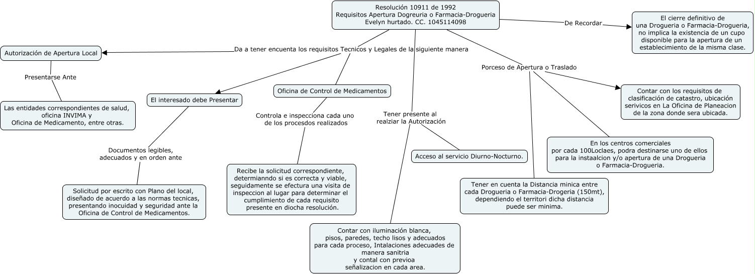 Este Cmap, tiene información relacionada con: Resolusión 10911 de 1992, Resolución 10911 de 1992 Requisitos Apertura Dogreuria o Farmacia-Drogueria Evelyn hurtado. CC. 1045114098 Tener presente al realziar la Autorización Acceso al servicio Diurno-Nocturno., Autorización de Apertura Local Presentarse Ante Las entidades correspondientes de salud, oficina INVIMA y Oficina de Medicamento, entre otras., Resolución 10911 de 1992 Requisitos Apertura Dogreuria o Farmacia-Drogueria Evelyn hurtado. CC. 1045114098 Porceso de Apertura o Traslado Contar con los requisitos de clasificación de catastro, ubicación serivicos en La Oficina de Planeacion de la zona donde sera ubicada., Resolución 10911 de 1992 Requisitos Apertura Dogreuria o Farmacia-Drogueria Evelyn hurtado. CC. 1045114098 Porceso de Apertura o Traslado Tener en cuenta la Distancia minica entre cada Drogueria o Farmacia-Drogeria (150mt), dependiendo el territori dicha distancia puede ser minima., Resolución 10911 de 1992 Requisitos Apertura Dogreuria o Farmacia-Drogueria Evelyn hurtado. CC. 1045114098 Tener presente al realziar la Autorización Contar con iluminación blanca, pisos, paredes, techo lisos y adecuados para cada proceso, Intalaciones adecuades de manera sanitria y contal con previoa señalizacion en cada area., El interesado debe Presentar Documentos legibles, adecuados y en orden ante Solicitud por escrito con Plano del local, diseñado de acuerdo a las normas tecnicas, presentando inocuidad y seguridad ante la Oficina de Control de Medicamentos., Oficina de Control de Medicamentos Controla e inspecciona cada uno de los procesdos realizados Recibe la solicitud correspondiente, determianndo si es correcta y viable, seguidamente se efectura una visita de inspeccion al lugar para determinar el cumplimiento de cada requisito presente en diocha resolución., Resolución 10911 de 1992 Requisitos Apertura Dogreuria o Farmacia-Drogueria Evelyn hurtado. CC. 1045114098 Da a tener encuenta los requisitos Tecnicos y Legales de la siguiente manera Autorización de Apertura Local, Resolución 10911 de 1992 Requisitos Apertura Dogreuria o Farmacia-Drogueria Evelyn hurtado. CC. 1045114098 Porceso de Apertura o Traslado En los centros comerciales por cada 100Loclaes, podra destinarse uno de ellos para la instaalcion y/o apertura de una Drogueria o Farmacia-Drogueria., Resolución 10911 de 1992 Requisitos Apertura Dogreuria o Farmacia-Drogueria Evelyn hurtado. CC. 1045114098 Da a tener encuenta los requisitos Tecnicos y Legales de la siguiente manera Oficina de Control de Medicamentos, Resolución 10911 de 1992 Requisitos Apertura Dogreuria o Farmacia-Drogueria Evelyn hurtado. CC. 1045114098 Da a tener encuenta los requisitos Tecnicos y Legales de la siguiente manera El interesado debe Presentar, Resolución 10911 de 1992 Requisitos Apertura Dogreuria o Farmacia-Drogueria Evelyn hurtado. CC. 1045114098 De Recordar El cierre definitivo de una Drogueria o Farmacia-Drogueria, no implica la existencia de un cupo disponible para la apertura de un establecimiento de la misma clase.