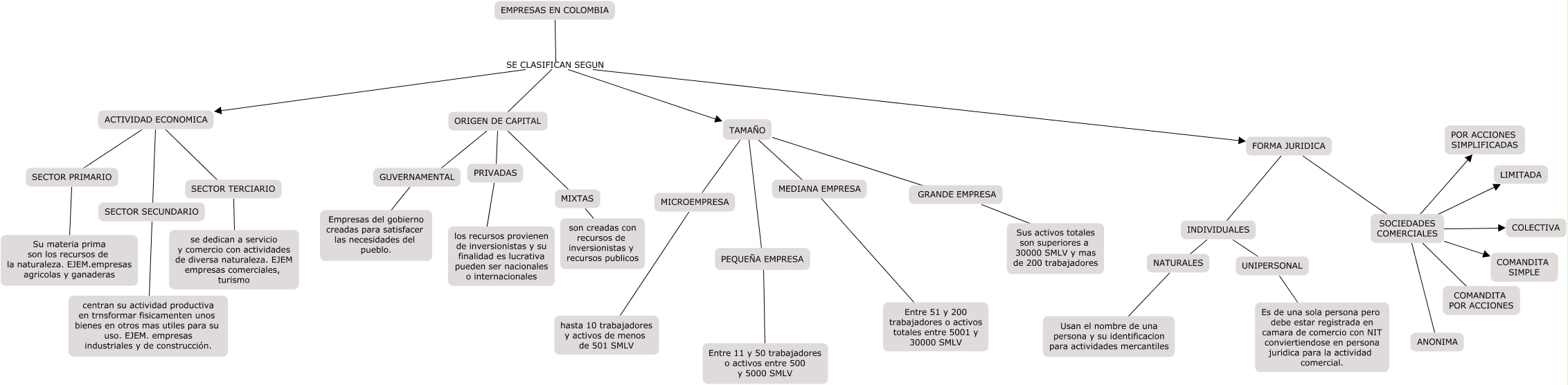 Este Cmap, tiene información relacionada con: FUNDAMENTOS EN GESTION INTEGRAL( EMPRESAS), GRANDE EMPRESA Sus activos totales son superiores a 30000 SMLV y mas de 200 trabajadores, MEDIANA EMPRESA ???? Entre 51 y 200 trabajadores o activos totales entre 5001 y 30000 SMLV, TAMAÑO PEQUEÑA EMPRESA, SOCIEDADES COMERCIALES LIMITADA, PEQUEÑA EMPRESA Entre 11 y 50 trabajadores o activos entre 500 y 5000 SMLV, ACTIVIDAD ECONOMICA SECTOR TERCIARIO, SOCIEDADES COMERCIALES COMANDITA SIMPLE, EMPRESAS EN COLOMBIA SE CLASIFICAN SEGUN ORIGEN DE CAPITAL, ORIGEN DE CAPITAL PRIVADAS, INDIVIDUALES UNIPERSONAL, SOCIEDADES COMERCIALES COMANDITA POR ACCIONES, GUVERNAMENTAL Empresas del gobierno creadas para satisfacer las necesidades del pueblo., SECTOR SECUNDARIO centran su actividad productiva en trnsformar fisicamenten unos bienes en otros mas utiles para su uso. EJEM. empresas industriales y de construcción., EMPRESAS EN COLOMBIA SE CLASIFICAN SEGUN TAMAÑO, SECTOR TERCIARIO se dedican a servicio y comercio con actividades de diversa naturaleza. EJEM empresas comerciales, turismo, ORIGEN DE CAPITAL MIXTAS, NATURALES Usan el nombre de una persona y su identificacion para actividades mercantiles, MIXTAS son creadas con recursos de inversionistas y recursos publicos, SECTOR PRIMARIO Su materia prima son los recursos de la naturaleza. EJEM.empresas agricolas y ganaderas, MICROEMPRESA hasta 10 trabajadores y activos de menos de 501 SMLV
