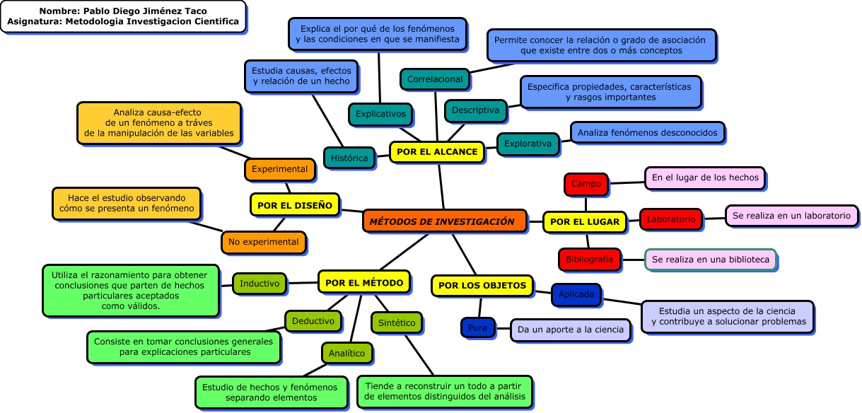 Este Cmap, tiene información relacionada con: METODOS DE INVESTIGACION, MÉTODOS DE INVESTIGACIÓN POR EL LUGAR, Experimental Analiza causa-efecto de un fenómeno a tráves de la manipulación de las variables, Explicativos Explica el por qué de los fenómenos y las condiciones en que se manifiesta, MÉTODOS DE INVESTIGACIÓN POR LOS OBJETOS, POR EL LUGAR Campo, Deductivo Consiste en tomar conclusiones generales para explicaciones particulares, POR EL ALCANCE Descriptiva, POR EL ALCANCE Explorativa, Analítico Estudio de hechos y fenómenos separando elementos, POR EL ALCANCE Explicativos, POR EL LUGAR Laboratorio, POR EL MÉTODO Analítico, POR EL MÉTODO Sintético, POR EL ALCANCE Correlacional, Inductivo Utiliza el razonamiento para obtener conclusiones que parten de hechos particulares aceptados como válidos., POR EL LUGAR Bibliografía, Sintético Tiende a reconstruir un todo a partir de elementos distinguidos del análisis, Laboratorio Se realiza en un laboratorio, POR EL DISEÑO Experimental, Bibliografía Se realiza en una biblioteca