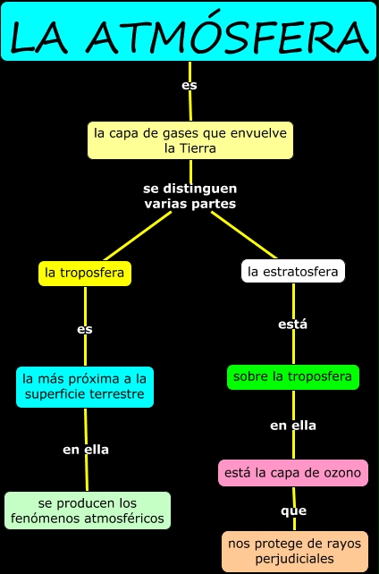 Este Cmap, tiene información relacionada con: La atmósfera, la capa de gases que envuelve la Tierra se distinguen varias partes la estratosfera, LA ATMÓSFERA es la capa de gases que envuelve la Tierra, sobre la troposfera en ella está la capa de ozono, la estratosfera está sobre la troposfera, está la capa de ozono que nos protege de rayos perjudiciales, la capa de gases que envuelve la Tierra se distinguen varias partes la troposfera, la más próxima a la superficie terrestre en ella se producen los fenómenos atmosféricos, la troposfera es la más próxima a la superficie terrestre