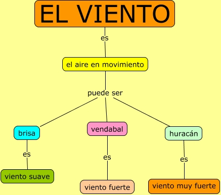 Este Cmap, tiene información relacionada con: El viento, brisa es viento suave, el aire en movimiento puede ser brisa, EL VIENTO es el aire en movimiento, el aire en movimiento puede ser vendabal, huracán es viento muy fuerte, el aire en movimiento puede ser huracán, vendabal es viento fuerte