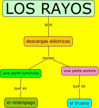 Este Cmap, tiene información relacionada con: Los rayos, LOS RAYOS son descargas eléctricas, descargas eléctricas tienen una parte luminosa, una parte luminosa que es el relámpago, descargas eléctricas tienen una parte sonora, una parte sonora que es el trueno