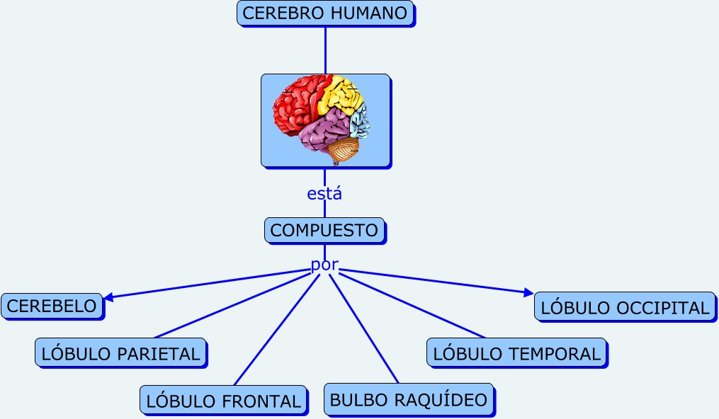 Este Cmap, tiene información relacionada con: CEREBRO, COMPUESTO por LÓBULO TEMPORAL, COMPUESTO por LÓBULO FRONTAL, CEREBRO HUMANO ????, COMPUESTO por CEREBELO, COMPUESTO por BULBO RAQUÍDEO, COMPUESTO por LÓBULO PARIETAL, está COMPUESTO, COMPUESTO por LÓBULO OCCIPITAL