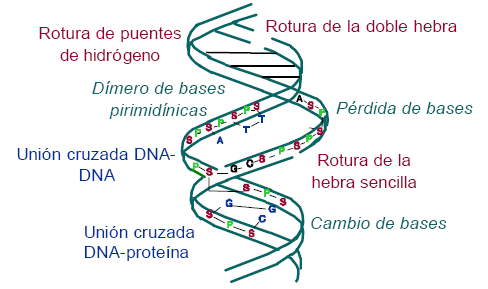 lesión radioinducida.png reparación del daño.url rotura simple y doble de cadena.png
