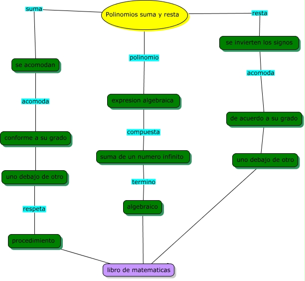 Este Cmap, tiene información relacionada con: suma y resta polinomios, Polinomios suma y resta resta se invierten los signos, algebraico libro de matematicas, suma de un numero infinito termino algebraico, uno debajo de otro libro de matematicas, Polinomios suma y resta polinomio expresion algebraica, conforme a su grado uno debajo de otro, uno debajo de otro respeta procedimiento, procedimiento libro de matematicas, Polinomios suma y resta suma se acomodan, se acomodan acomoda conforme a su grado, de acuerdo a su grado uno debajo de otro, expresion algebraica compuesta suma de un numero infinito, se invierten los signos acomoda de acuerdo a su grado