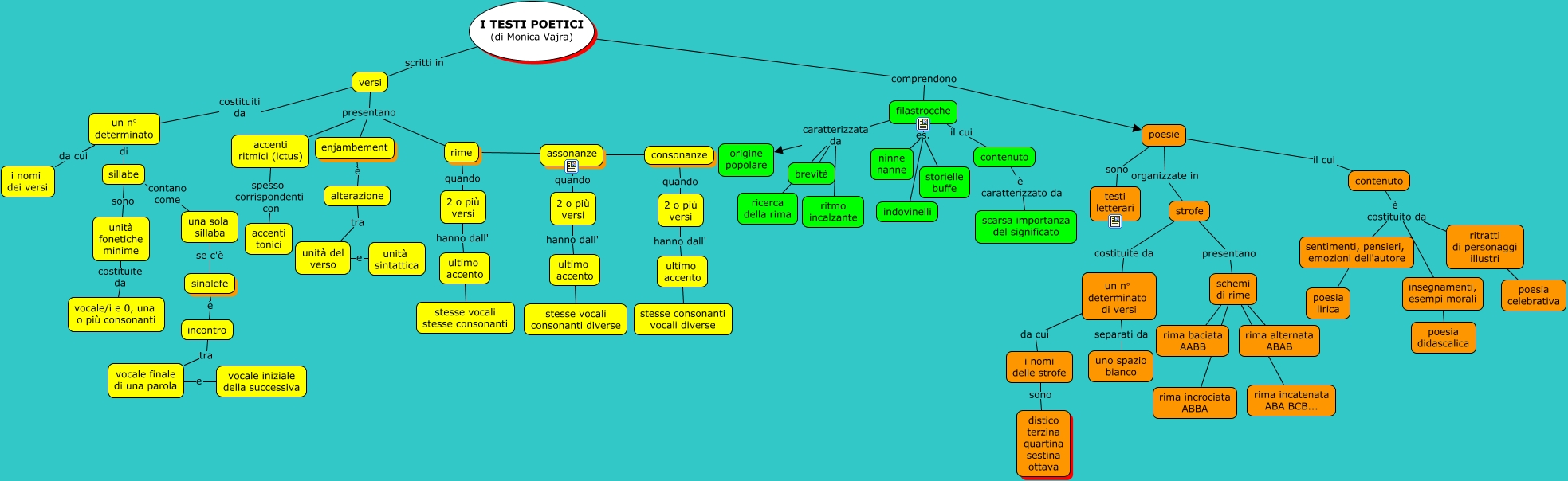 Questa Cmap, creata con IHMC CmapTools, contiene informazioni relative a: I testi poetici, versi presentano rime, versi presentano accenti ritmici (ictus), un n° determinato di versi da cui i nomi delle strofe, 2 o più versi hanno dall' ultimo accento, sinalefe è incontro, sillabe contano come una sola sillaba, filastrocche es. indovinelli, ultimo accento stesse vocali stesse consonanti, filastrocche caratterizzata da brevità, filastrocche es. ninne nanne, incontro tra vocale finale di una parola, un n° determinato di sillabe, contenuto è caratterizzato da scarsa importanza del significato, sentimenti, pensieri, emozioni dell'autore poesia lirica, schemi di rime rima incatenata ABA BCB..., poesie sono testi letterari, rime assonanze, filastrocche caratterizzata da origine popolare, poesie il cui contenuto, ultimo accento stesse vocali consonanti diverse
