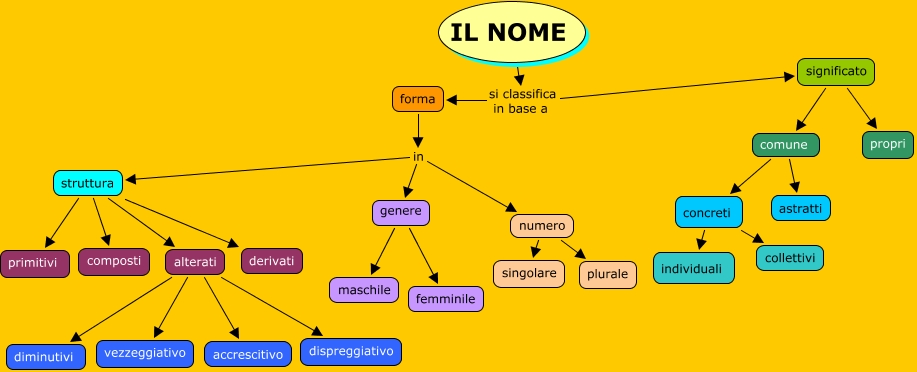 Questa Cmap, creata con IHMC CmapTools, contiene informazioni relative a: Il nome, comune astratti, numero singolare, concreti collettivi, genere maschile, alterati dispreggiativo, struttura composti, significato comune, IL NOME si classifica in base a significato, struttura primitivi, alterati diminutivi, forma in numero, comune concreti, IL NOME si classifica in base a forma, significato propri, alterati accrescitivo, alterati vezzeggiativo, concreti individuali, numero plurale, forma in struttura, struttura derivati