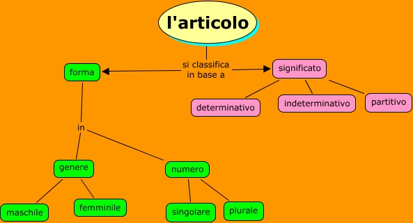Questa Cmap, creata con IHMC CmapTools, contiene informazioni relative a: L'articolo, l'articolo si classifica in base a significato, numero plurale, forma in numero, significato partitivo, genere maschile, significato determinativo, forma in genere, significato indeterminativo, genere femminile, numero singolare, l'articolo si classifica in base a forma