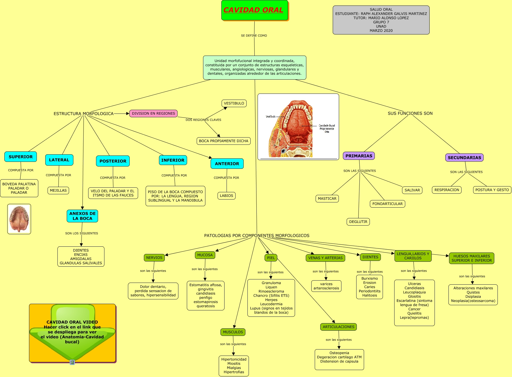 Este Cmap, tiene información relacionada con: SALUD ORAL ALEXANDER GALVIS, POSTERIOR COMPUESTA POR VELO DEL PALADAR Y EL ITSMO DE LAS FAUCES, SECUNDARIAS SON LAS SIGUIENTES POSTURA Y GESTO, VENAS Y ARTERIAS son las siguientes varices arterosclerosis, SUPERIOR COMPUESTA POR BOVEDA PALATINA PALADAR O PALADAR, PRIMARIAS SON LAS SIGUIENTES DEGLUTIR, Unidad morfofucional integrada y coordinada, constituida por un conjunto de estructuras esqueleticas, musculares, angiologicas, nerviosas, glandulares y dentales, organizadas alrededor de las articulaciones. ESTRUCTURA MORFOLOGICA SUPERIOR, PIEL son las siguientes Granuloma Liquen Rinoescleroma Chancro (Sifilis ETS) Herpes Leucodermia Lupus (signos en tejidos blandos de la boca), Unidad morfofucional integrada y coordinada, constituida por un conjunto de estructuras esqueleticas, musculares, angiologicas, nerviosas, glandulares y dentales, organizadas alrededor de las articulaciones. PATOLOGIAS POR COMPONENTES MORFOLOGICOS LENGUA,LABIOS Y CARIILOS, INFERIOR COMPUESTA POR PISO DE LA BOCA COMPUESTO POR: LA LENGUA, REGION SUBLINGUAL Y LA MANDIBULA, SECUNDARIAS SON LAS SIGUIENTES RESPIRACION, Unidad morfofucional integrada y coordinada, constituida por un conjunto de estructuras esqueleticas, musculares, angiologicas, nerviosas, glandulares y dentales, organizadas alrededor de las articulaciones. ESTRUCTURA MORFOLOGICA DIVISION EN REGIONES, MUCOSA son las siguientes Estomatitis aftosa, gingivitis candidiasis penfigo estomapirosis queratosis, DIVISION EN REGIONES DOS REGIONES CLAVES VESTIBULO, Unidad morfofucional integrada y coordinada, constituida por un conjunto de estructuras esqueleticas, musculares, angiologicas, nerviosas, glandulares y dentales, organizadas alrededor de las articulaciones. PATOLOGIAS POR COMPONENTES MORFOLOGICOS MUCOSA, Unidad morfofucional integrada y coordinada, constituida por un conjunto de estructuras esqueleticas, musculares, angiologicas, nerviosas, glandulares y dentales, organizadas alrededor de las articulaciones. ESTRUCTURA MORFOLOGICA ANTERIOR, Unidad morfofucional integrada y coordinada, constituida por un conjunto de estructuras esqueleticas, musculares, angiologicas, nerviosas, glandulares y dentales, organizadas alrededor de las articulaciones. PATOLOGIAS POR COMPONENTES MORFOLOGICOS ARTICULACIONES, Unidad morfofucional integrada y coordinada, constituida por un conjunto de estructuras esqueleticas, musculares, angiologicas, nerviosas, glandulares y dentales, organizadas alrededor de las articulaciones. ESTRUCTURA MORFOLOGICA INFERIOR, HUESOS MAXILARES SUPERIOR E INFERIOR son las siguientes Alteraciones maxilares Quistes Dsiplasia Neoplasia(osteosarcoma), LATERAL COMPUESTA POR MEJILLAS, PRIMARIAS SON LAS SIGUIENTES MASTICAR