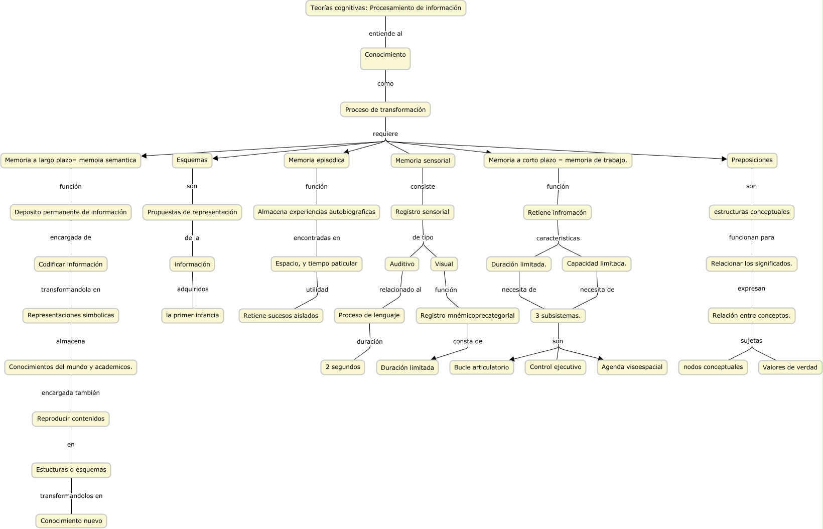 Este Cmap, tiene información relacionada con: equipo 1 UVM, Memoria episodica función Almacena experiencias autobiograficas, 3 subsistemas. son Agenda visoespacial, Relación entre conceptos. sujetas nodos conceptuales, Registro sensorial de tipo Visual, Proceso de transformación requiere Memoria a corto plazo = memoria de trabajo., Registro sensorial de tipo Auditivo, información adquiridos la primer infancia, Teorías cognitivas: Procesamiento de información entiende al Conocimiento, estructuras conceptuales funcionan para Relacionar los significados., Reproducir contenidos en Estucturas o esquemas, Relación entre conceptos. sujetas Valores de verdad, Auditivo relacionado al Proceso de lenguaje, Propuestas de representación de la información, Retiene infromacón caracteristicas Duración limitada., Codificar información transformandola en Representaciones simbolicas, Proceso de transformación requiere Memoria a largo plazo= memoia semantica, Memoria a corto plazo = memoria de trabajo. función Retiene infromacón, Relacionar los significados. expresan Relación entre conceptos., Capacidad limitada. necesita de 3 subsistemas., Conocimientos del mundo y academicos. encargada también Reproducir contenidos