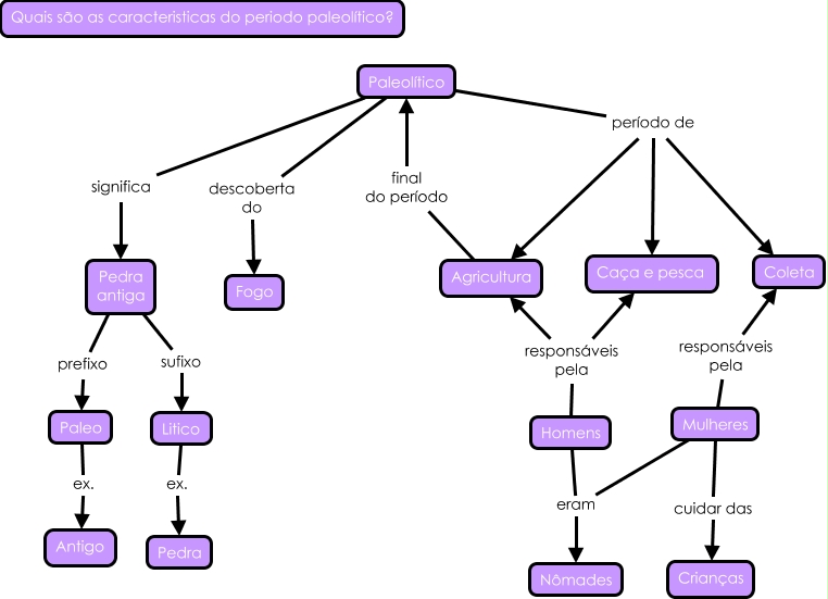 Esse mapa conceitual, produzido no IHMC CmapTools, tem a informação relacionada a: paleolitico novo, Agricultura final do período Paleolítico, Paleolítico descoberta do Fogo, Pedra antiga sufixo Litico, Paleolítico período de Agricultura, Litico ex. Pedra, Homens responsáveis pela Agricultura, Mulheres responsáveis pela Coleta, Paleo ex. Antigo, Homens eram Nômades, Mulheres cuidar das Crianças, Pedra antiga prefixo Paleo, Homens responsáveis pela Caça e pesca, Paleolítico significa Pedra antiga, Paleolítico período de Caça e pesca, Paleolítico período de Coleta, Mulheres eram Nômades