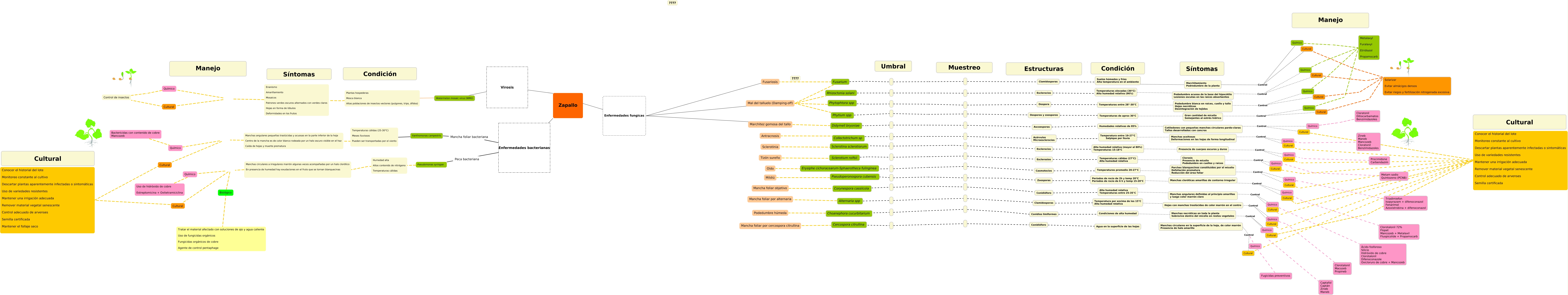 This Concept Map, created with IHMC CmapTools, has information related to: mapa enfermedades zapallo 2, Rhizoctonia solani,, Cultural Conocer el historial del lote Monitoreo constante al cultivo Descartar plantas aparentemente infectadas o sintomáticas Uso de variedades resistentes Mantener una irrigación adecuada Remover material vegetal senescente Control adecuado de arvenses Semilla certificada, Químico ???? Fugicidas preventivos, Conidióforo, Casmotecios, Plantas hospederas Mosca blanca Altas poblaciones de insectos vectores (pulgones, trips, áfidos) Enanismo Amarillamiento Mosaicos Patrones verdes oscuros alternados con verdes claros Hojas en forma de lóbulos Deformidades en los frutos, Collectotrichum sp ???? Antracnosis, Esclerocios ???? Temperaturas elevadas (30°C) Alta humedad relativa (96%), Cultural Solarizar Evitar almácigos densos Evitar riegos y fertilización nitrogenada excesiva, Alternaria spp ???? Mancha foliar por alternaria, Marchitamiento Podredumbre de la planta Control Cultural, Biológico ???? Tratar el material afectado con soluciones de ajo y agua caliente Uso de fungicidas orgánicos Fungicidas orgánicos de cobre Agente de control pentaphage, Manchas circulares en la superficie de la hoja, de color marrón Presencia de halo amarillo Control Cultural,,, Alta humedad relativa (mayor al 80%) Temperaturas 15-18°C Control Cultural, Suelos húmedos y fríos Alta temperatura en el ambiente ???? Marchitamiento Podredumbre de la planta, Cercospora citrullina ???? Mancha foliar por cercospora citrullina, Sclerotium rolfsii