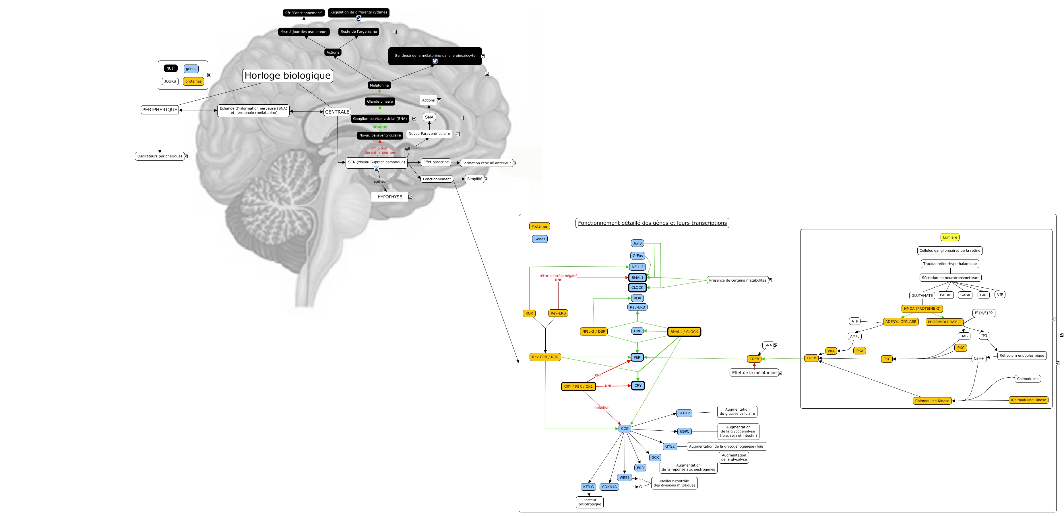 Cette carte de concepts créée avec IHMC CmapTools traite de: Horloge biologique (version toile), PKC CREB, GHRH GH, Glucocorticoïdes Anti-inflammatoire, CRY association PER/CRY/CK1, iPKC PKC, Cellules ganglionnaires de la rétine Tractus rétino-hypothalamique, BMAL1 / CLOCK CCG, CRY augmentation des concentrations PER, CRH ACTH / TSH, TSH Production la nuit, Actions Mise à jour des oscillateurs périphériques, Tractus rétino-hypothalamique Sécretion de neurotransmetteurs, CRY / PER / CK1 inhibition CCG, IP3 Réticulum endoplasmique, GH Rôles, Calmoduline Kinase CREB, NMDA (PROTEINE G) PHOSPHOLIPASE C, GnRH ESPACE PORTE HYPOPHYSAIRE CRH, JunB CLOCK, ROR NFIL-3