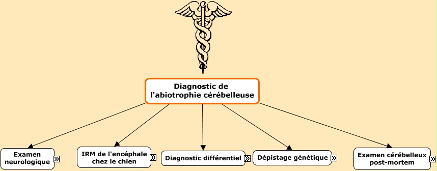 Cette carte de concepts créée avec IHMC CmapTools traite de: Diagnostic, IRM de l'encéphale permet d'observer L'augmentation de quantité du fluide cérébrospinal, Examen cérebelleux post-mortem fait appel à Dissection, Trouver les marqueurs génétiques moléculaires associés à l'abiotrophie cérébelleuse peuvent être Polymorphisme haplotype, Anamnèse indiquant l'absence de contact avec ces substances permettent de Confirmer le diagnostic de l'abiotrophie cérébelleuse, Microscopie optique permet Observation des anomalies du cervelet, Dépistage génétique utilisé pour Trouver les marqueurs génétiques moléculaires associés à l'abiotrophie cérébelleuse, Évaluation de la PCR PCR positive si l'intensité est élevée, Observation par pesée du rapport cervelet/cerveau parfois diminué Chevaux Paso Fino et Pur Sang, Examen neurologique Réponse de la menace, Amorce marquée par fluorescence permet Observation de l'évolution de l'intensité de la fluorescence avec le nombre de cycles de PCR, La réduction de la taille du cervelet illustrés par, Microsatellites définis par Répétition de séquences particulières d'ADN, Observation des anomalies du cervelet Inclusions cytoplasmiques dans les cellules de Purkinje, Anamnèse indiquant l'appartition des symptômes après la naissance et de manière progressive permettent de Confirmer le diagnostic de l'abiotrophie cérébelleuse, Confrontation de l'abiotrophie cérébelleuse contre... Infections bactériennes ou virales, Diagnostic de l'abiotrophie cérébelleuse Diagnostic différentiel, Polymerase Chain Reaction (PCR) suivie de Électrophorèse, Single Nucleotide Polymorphism (SNP) défini par Remplacement d'un nucléotide par un autre chez un groupe d'individus, Sérologie ou virologie négatives permettent de Confirmer le diagnostic de l'abiotrophie cérébelleuse, Rapport cervelet/cerveau de 6% s'oppose à 8% normalement