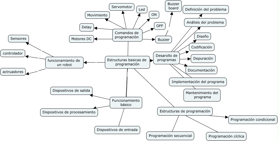 Este Cmap, tiene información relacionada con: Etapa 3, Estructuras basicas de programación ???? Definición del problema, Estructuras basicas de programación ???? Buzzer, Estructuras basicas de programación funcionamiento de un robot, Estructuras basicas de programación ???? Dispositivos de entrada, Estructuras basicas de programación ???? Codificación, Estructuras basicas de programación ???? Diseño, funcionamiento de un robot Sensores, funcionamiento de un robot controlador, Estructuras basicas de programación ???? OFF, Estructuras basicas de programación ???? Programación secuencial, Estructuras basicas de programación ???? Servomotor, Estructuras basicas de programación ???? Depuración, funcionamiento de un robot actruadores, Estructuras basicas de programación ???? Programación condicional, Estructuras basicas de programación ???? Led, Estructuras basicas de programación ???? Análisis del problema, Estructuras basicas de programación ???? Desarollo de programas, Estructuras basicas de programación ???? Dispositivos de salida, Estructuras basicas de programación ???? ON, Estructuras basicas de programación ???? Dispositivos de procesamiento