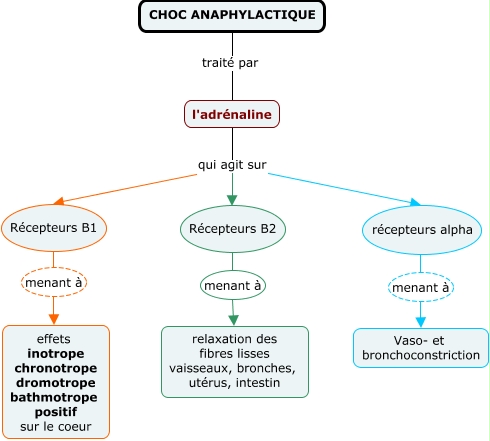 Cette carte de concepts créée avec IHMC CmapTools traite de: 5.1.Choc ana supplément, Récepteurs B2 menant à relaxation des fibres lisses vaisseaux, bronches, utérus, intestin, l'adrénaline qui agit sur Récepteurs B1, récepteurs alpha menant à Vaso- et bronchoconstriction, l'adrénaline qui agit sur Récepteurs B2, l'adrénaline qui agit sur récepteurs alpha, CHOC ANAPHYLACTIQUE traité par l'adrénaline, Récepteurs B1 menant à effets inotrope chronotrope dromotrope bathmotrope positif sur le coeur