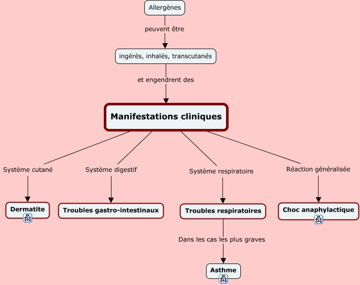 Cette carte de concepts créée avec IHMC CmapTools traite de: 4.0.Symptômes, Manifestations cliniques Système digestif Troubles gastro-intestinaux, Troubles respiratoires Dans les cas les plus graves Asthme, Manifestations cliniques Réaction généralisée Choc anaphylactique, ingérés, inhalés, transcutanés et engendrent des Manifestations cliniques, Manifestations cliniques Système cutané Dermatite, Allergènes peuvent être ingérés, inhalés, transcutanés, Manifestations cliniques Système respiratoire Troubles respiratoires