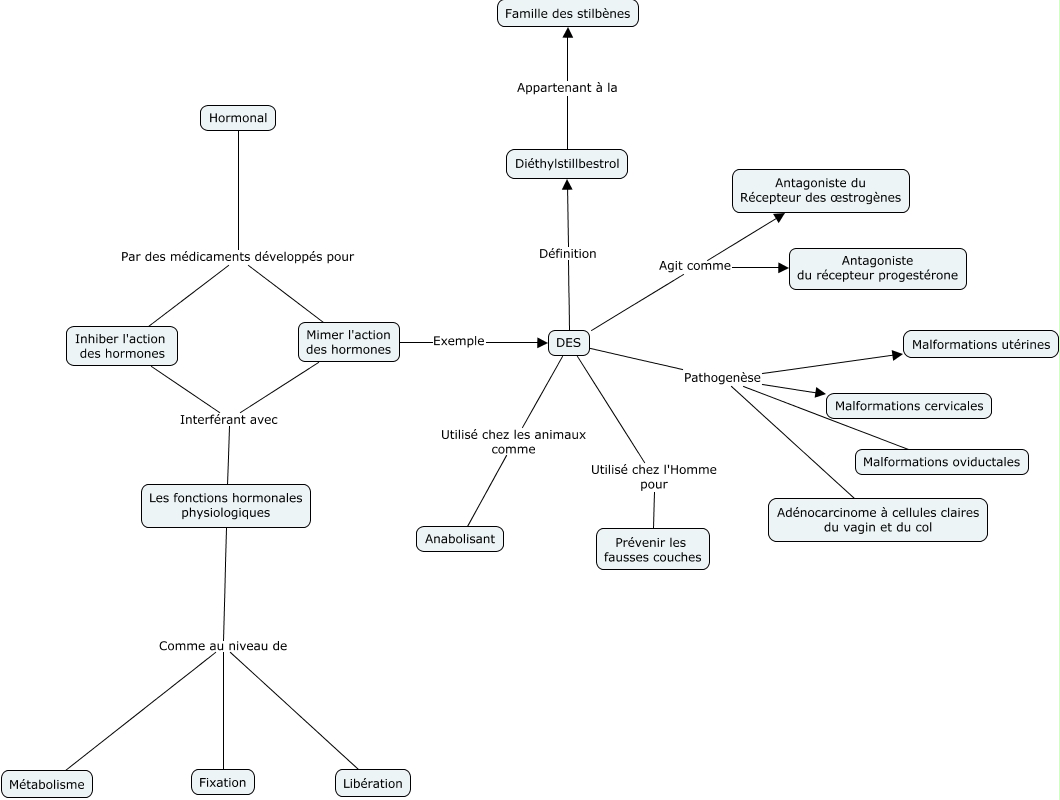 Cette carte de concepts créée avec IHMC CmapTools traite de: Hormonal, Mimer l'action des hormones Exemple DES, Inhiber l'action des hormones Interférant avec Les fonctions hormonales physiologiques, DES Utilisé chez les animaux comme Anabolisant, DES Agit comme Antagoniste du Récepteur des œstrogènes, Les fonctions hormonales physiologiques Comme au niveau de Fixation, DES Pathogenèse Adénocarcinome à cellules claires du vagin et du col, DES Définition Diéthylstillbestrol, Les fonctions hormonales physiologiques Comme au niveau de Libération, Hormonal Par des médicaments développés pour Mimer l'action des hormones, Mimer l'action des hormones Interférant avec Les fonctions hormonales physiologiques, Hormonal Par des médicaments développés pour Inhiber l'action des hormones, DES Pathogenèse Malformations oviductales, DES Utilisé chez l'Homme pour Prévenir les fausses couches, DES Pathogenèse Malformations utérines, Diéthylstillbestrol Appartenant à la Famille des stilbènes, DES Pathogenèse Malformations cervicales, DES Agit comme Antagoniste du récepteur progestérone, Les fonctions hormonales physiologiques Comme au niveau de Métabolisme