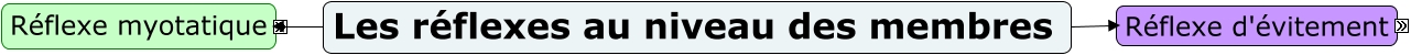 Cette carte de concepts créée avec IHMC CmapTools traite de: Carte 3 réflexes au niveau des membres,, Réflexe myotatique Interprétation On devrait observer l'extension du membre (due à la contraction du muscle quadriceps fémoral). Réflexe unilatéral, Réflexe myotatique Mise en pratique Le membre postérieur du chien doit être décontracté. Tapez avec un marteau sur le tendon du muscle extenseur de la jambe (quadriceps fémoral)., Réflexe d'évitement Interprétation Retrait du membre où le pincement a eu lieu et équilibre avec l'autre membre, Les réflexes au niveau des membres Réflexe d'évitement, Réflexe d'évitement Mise en pratique Maintenir le chien debout, sur 4 pattes. Pincez avec 2 doigts la face dorsale d’un des doigts du membre antérieur, Réflexe d'évitement Voies nerveuses, Les réflexes au niveau des membres Réflexe myotatique, Voici un exemple : réflexe patellaire, Réflexe myotatique Voies nerveuses