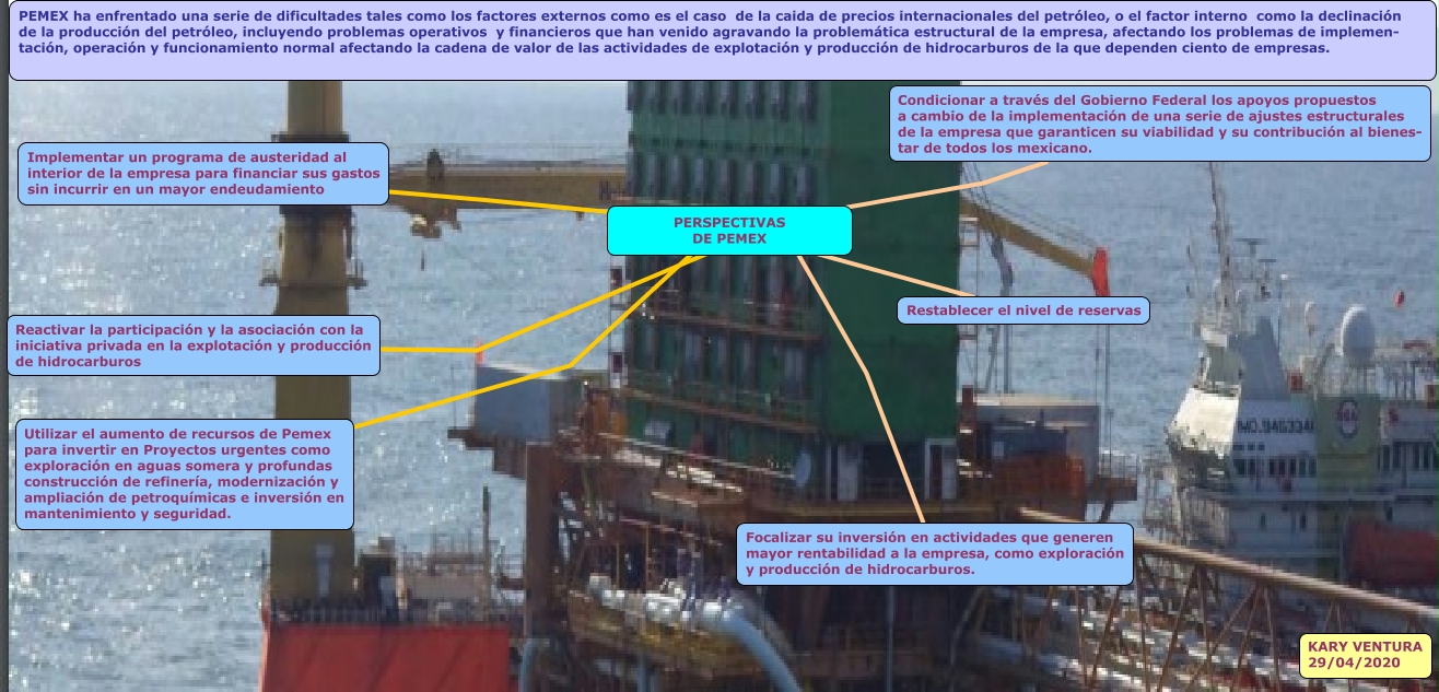 Este Cmap, tiene información relacionada con: PERSPECTIVAS DE PEMEX, PERSPECTIVAS DE PEMEX ???? Focalizar su inversión en actividades que generen mayor rentabilidad a la empresa, como exploración y producción de hidrocarburos., PERSPECTIVAS DE PEMEX ???? Utilizar el aumento de recursos de Pemex para invertir en Proyectos urgentes como exploración en aguas somera y profundas construcción de refinería, modernización y ampliación de petroquímicas e inversión en mantenimiento y seguridad., PERSPECTIVAS DE PEMEX ???? Implementar un programa de austeridad al interior de la empresa para financiar sus gastos sin incurrir en un mayor endeudamiento, PERSPECTIVAS DE PEMEX ???? Restablecer el nivel de reservas, PERSPECTIVAS DE PEMEX ???? Condicionar a través del Gobierno Federal los apoyos propuestos a cambio de la implementación de una serie de ajustes estructurales de la empresa que garanticen su viabilidad y su contribución al bienes- tar de todos los mexicano., PERSPECTIVAS DE PEMEX ???? Reactivar la participación y la asociación con la iniciativa privada en la explotación y producción de hidrocarburos