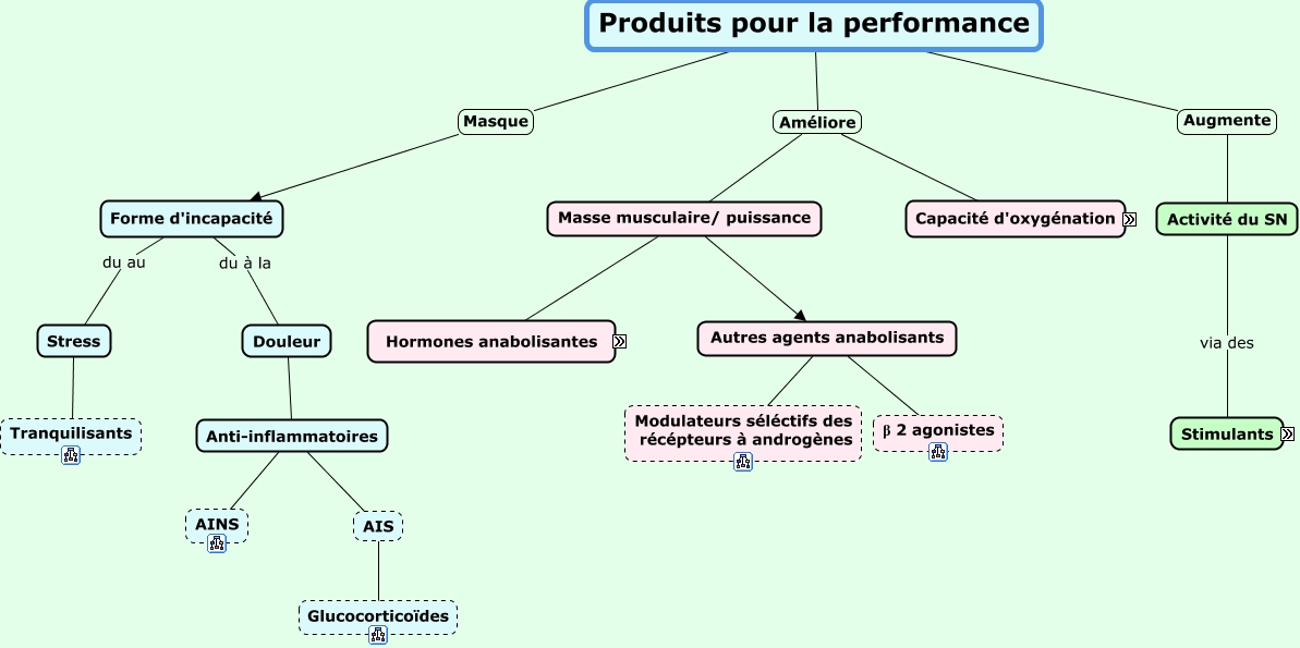 Cette carte de concepts créée avec IHMC CmapTools traite de: Copie de Produits dopants, Hormones anabolisantes Hormone de croissance et substances apparentées, Stimulants Cocaïne, Stress Tranquilisants, Hormones anabolisantes Stéroïdes sexuels et substances apparentées, Anti-inflammatoires AIS, Douleur Anti-inflammatoires, Masse musculaire/ puissance Hormones anabolisantes, Capacité d'oxygénation Transporteurs d'oxygène synthétique, Capacité d'oxygénation Bronchodilatateurs, Stéroïdes sexuels et substances apparentées Autres substances apparentées, Autres agents anabolisants Modulateurs séléctifs des récépteurs à androgènes, Produits pour la performance Améliore Capacité d'oxygénation, Bronchodilatateurs β2 agonistes, Autres agents anabolisants β 2 agonistes, Produits pour la performance Masque Forme d'incapacité, Forme d'incapacité du au Stress, Forme d'incapacité du à la Douleur, Activité du SN via des Stimulants, Stimulants Amphétamine et dérivé, Produits pour la performance Augmente Activité du SN