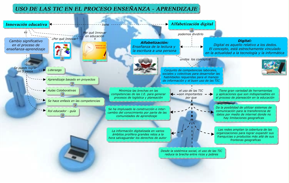 Este Cmap, tiene información relacionada con: Uso de las TIC en la E y A, Conjunto de competencias laborales, sociales y colectivas para desarrollar las habilidades requeridas para el manejo de información y el buen uso de las TIC el uso de las TIC son importantes por que Se ha implusado la construcción e inter- cambio del conocimiento por parte de las comunidades de aprendizaje, Cambio significativo en el proceso de enseñanza-aprendizaje Se puede lograr en 5 pasos Liderazgo, Conjunto de competencias laborales, sociales y colectivas para desarrollar las habilidades requeridas para el manejo de información y el buen uso de las TIC el uso de las TIC son importantes por que Da la posiblidad de utilizar sistemas de comunicación para la transferencia de datos por medio de internet donde no hay limitaciones geograficas, Innovación educativa ¿Por qué Innovar? ?, Alfabetización digital podemos dividirlo Digital: Digital es aquello relativo a los dedos. El concepto, está estrechamente vinculado en la actualidad a la tecnología y la informática, Cambio significativo en el proceso de enseñanza-aprendizaje Se puede lograr en 5 pasos Se hace enfasis en las competencias, Alfabetización digital podemos dividirlo Alfabetización: Enseñanza de la lectura y la escritura a una persona, Alfabetización: Enseñanza de la lectura y la escritura a una persona unidos Conjunto de competencias laborales, sociales y colectivas para desarrollar las habilidades requeridas para el manejo de información y el buen uso de las TIC, Cambio significativo en el proceso de enseñanza-aprendizaje Se puede lograr en 5 pasos Aprendizaje basado en proyectos, Digital: Digital es aquello relativo a los dedos. El concepto, está estrechamente vinculado en la actualidad a la tecnología y la informática los conceptos Conjunto de competencias laborales, sociales y colectivas para desarrollar las habilidades requeridas para el manejo de información y el buen uso de las TIC, USO DE LAS TIC EN EL PROCESO ENSEÑANZA - APRENDIZAJE tiene Innovación educativa, Cambio significativo en el proceso de enseñanza-aprendizaje Se puede lograr en 5 pasos Aulas Colaborativas, Conjunto de competencias laborales, sociales y colectivas para desarrollar las habilidades requeridas para el manejo de información y el buen uso de las TIC el uso de las TIC son importantes por que Tiene gran variedad de herramientas y aplicaciones que son indispensables en el proceso de planeación en la educación, USO DE LAS TIC EN EL PROCESO ENSEÑANZA - APRENDIZAJE tiene Alfabetización digital, Conjunto de competencias laborales, sociales y colectivas para desarrollar las habilidades requeridas para el manejo de información y el buen uso de las TIC el uso de las TIC son importantes por que La información digitalizada en varios ámbitos prolifera grandes retos a la hora salvaguardar los derechos de autor, Innovación educativa Por qué Innovar en educación, Cambio significativo en el proceso de enseñanza-aprendizaje Se puede lograr en 5 pasos Rol educador - guía, Conjunto de competencias laborales, sociales y colectivas para desarrollar las habilidades requeridas para el manejo de información y el buen uso de las TIC el uso de las TIC son importantes por que Minimiza las brechas en las competencias de las I.E. para generar procesos de logística y planeación, Innovación educativa es Cambio significativo en el proceso de enseñanza-aprendizaje, Conjunto de competencias laborales, sociales y colectivas para desarrollar las habilidades requeridas para el manejo de información y el buen uso de las TIC el uso de las TIC son importantes por que Desde la sistémica social, el uso de las TIC reduce la brecha entre ricos y pobres