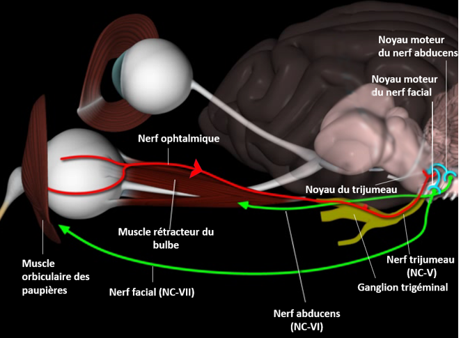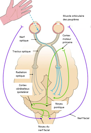 Réflexe cornéen ILLUSTRATION.PNG Réflexe d'évitement ILLUSTRATION.png Réflexe myotatique général ILLUSTRATION.png Réflexe palpébral ILLUSTRATION.PNG Réflexe panniculaire ILLUSTRATION.PNG Réflexe périnéal ILLUSTRATION.PNG Réflexe pupillaire ILLUSTRATION.PNG Réponse de reposionnement.PNG Test de la menace ILLUSTRATION.PNG