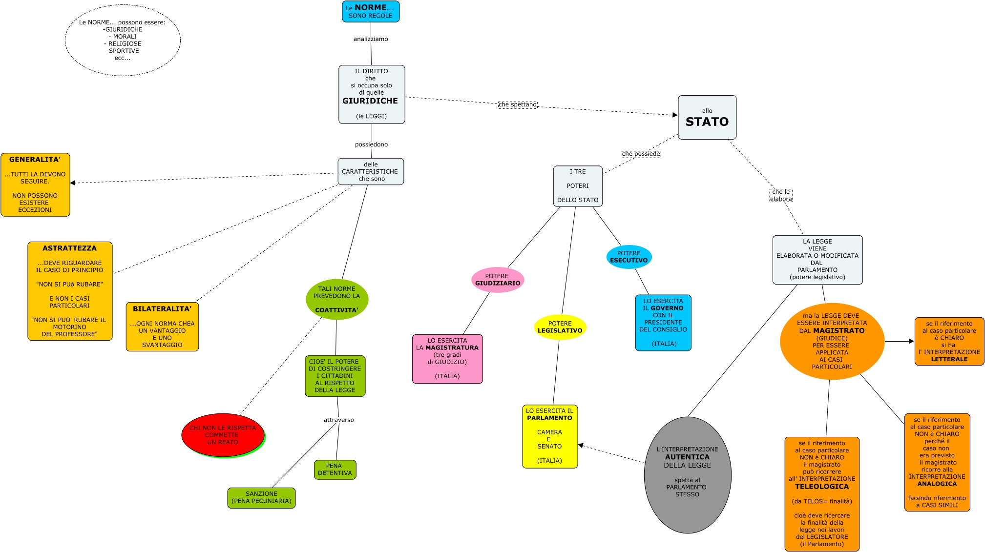 Questa Cmap, creata con IHMC CmapTools, contiene informazioni relative a: Le norme e lo Stato, delle CARATTERISTICHE che sono ASTRATTEZZA ...DEVE RIGUARDARE IL CASO DI PRINCIPIO "NON SI PUò RUBARE" E NON I CASI PARTICOLARI "NON SI PUO' RUBARE IL MOTORINO DEL PROFESSORE", delle CARATTERISTICHE che sono TALI NORME PREVEDONO LA COATTIVITA' CIOE' IL POTERE DI COSTRINGERE I CITTADINI AL RISPETTO DELLA LEGGE, CIOE' IL POTERE DI COSTRINGERE I CITTADINI AL RISPETTO DELLA LEGGE attraverso PENA DETENTIVA, IL DIRITTO che si occupa solo di quelle GIURIDICHE (le LEGGI) che spettano allo STATO, L'INTERPRETAZIONE AUTENTICA DELLA LEGGE spetta al PARLAMENTO STESSO LO ESERCITA IL PARLAMENTO CAMERA E SENATO (ITALIA), delle CARATTERISTICHE che sono GENERALITA' ...TUTTI LA DEVONO SEGUIRE. NON POSSONO ESISTERE ECCEZIONI, CIOE' IL POTERE DI COSTRINGERE I CITTADINI AL RISPETTO DELLA LEGGE attraverso SANZIONE (PENA PECUNIARIA), IL DIRITTO che si occupa solo di quelle GIURIDICHE (le LEGGI) possiedono delle CARATTERISTICHE che sono, LA LEGGE VIENE ELABORATA O MODIFICATA DAL PARLAMENTO (potere legislativo) ma la LEGGE DEVE ESSERE INTERPRETATA DAL MAGISTRATO (GIUDICE) PER ESSERE APPLICATA AI CASI PARTICOLARI se il riferimento al caso particolare NON è CHIARO il magistrato può ricorrere all' INTERPRETAZIONE TELEOLOGICA (da TELOS= finalità) cioè deve ricercare la finalità della legge nei lavori del LEGISLATORE (il Parlamento), I TRE POTERI DELLO STATO POTERE ESECUTIVO LO ESERCITA IL GOVERNO CON IL PRESIDENTE DEL CONSIGLIO (ITALIA), LA LEGGE VIENE ELABORATA O MODIFICATA DAL PARLAMENTO (potere legislativo) ma la LEGGE DEVE ESSERE INTERPRETATA DAL MAGISTRATO (GIUDICE) PER ESSERE APPLICATA AI CASI PARTICOLARI se il riferimento al caso particolare NON è CHIARO perché il caso non era previsto il magistrato ricorre alla INTERPRETAZIONE ANALOGICA facendo riferimento a CASI SIMILI, allo STATO che possiede I TRE POTERI DELLO STATO, Le NORME... SONO REGOLE analizziamo IL DIRITTO che si occupa solo di quelle GIURIDICHE (le LEGGI), allo STATO che le elabora LA LEGGE VIENE ELABORATA O MODIFICATA DAL PARLAMENTO (potere legislativo), LA LEGGE VIENE ELABORATA O MODIFICATA DAL PARLAMENTO (potere legislativo) L'INTERPRETAZIONE AUTENTICA DELLA LEGGE spetta al PARLAMENTO STESSO, delle CARATTERISTICHE che sono TALI NORME PREVEDONO LA COATTIVITA' CHI NON LE RISPETTA COMMETTE UN REATO, I TRE POTERI DELLO STATO POTERE GIUDIZIARIO LO ESERCITA LA MAGISTRATURA (tre gradi di GIUDIZIO) (ITALIA), delle CARATTERISTICHE che sono BILATERALITA' ...OGNI NORMA CHEA UN VANTAGGIO E UNO SVANTAGGIO, LA LEGGE VIENE ELABORATA O MODIFICATA DAL PARLAMENTO (potere legislativo) ma la LEGGE DEVE ESSERE INTERPRETATA DAL MAGISTRATO (GIUDICE) PER ESSERE APPLICATA AI CASI PARTICOLARI se il riferimento al caso particolare è CHIARO si ha l' INTERPRETAZIONE LETTERALE, I TRE POTERI DELLO STATO POTERE LEGISLATIVO LO ESERCITA IL PARLAMENTO CAMERA E SENATO (ITALIA)