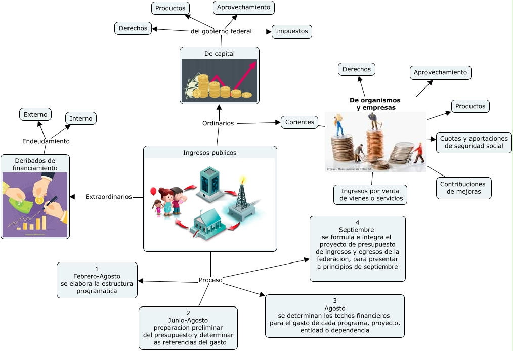 Este Cmap, tiene información relacionada con: mapa mem, Corientes De organismos y empresas Derechos, Corientes De organismos y empresas Contribuciones de mejoras, Ingresos publicos Ordinarios De capital, Ingresos publicos Proceso 2 Junio-Agosto preparacion preliminar del presupuesto y determinar las referencias del gasto, Deribados de financiamiento Endeudamiento Interno, De capital del gobierno federal Derechos, Ingresos publicos Proceso 3 Agosto se determinan los techos financieros para el gasto de cada programa, proyecto, entidad o dependencia, Ingresos publicos Proceso 1 Febrero-Agosto se elabora la estructura programatica, De capital del gobierno federal Aprovechamiento, Ingresos publicos Ordinarios Corientes, Corientes De organismos y empresas Productos, Corientes De organismos y empresas Ingresos por venta de vienes o servicios, Ingresos publicos Proceso 4 Septiembre se formula e integra el proyecto de presupuesto de ingresos y egresos de la federacion, para presentar a principios de septiembre, Deribados de financiamiento Endeudamiento Externo, De capital del gobierno federal Productos, Ingresos publicos Extraordinarios Deribados de financiamiento, De capital del gobierno federal Impuestos, Corientes De organismos y empresas Aprovechamiento, Corientes De organismos y empresas Cuotas y aportaciones de seguridad social