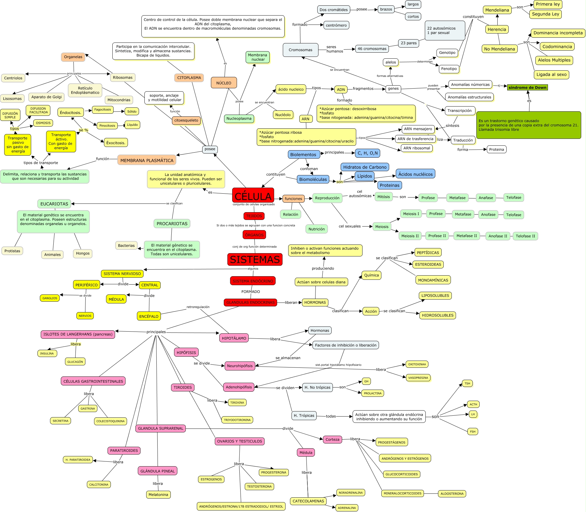 Este Cmap, tiene información relacionada con: Sin Título 1, posee ???? citoesqueleto, Organelas principales Centriolos, HORMONAS clasifican Acción, SISTEMAS algunos SISTEMA ENDÓCRINO, El material génetico se encuentra en el citoplasma. Todas son unicelulares. ???? Bacterias, PARATIROIDES libera H. PARATIROIDEA, ADN fragmentos genes, Cromosomas seres humanos 46 cromosomas, Organelas principales Aparato de Golgi, Meiosis II ???? Profase II, Corteza libera ANDRÓGENOS Y ESTRÓGENOS, Mendeliana son Primera ley, Adenohipófisis se dividen H. No trópicas, ÓRGANOS conj de org función determinada SISTEMAS, La unidad anatómica y funcional de los seres vivos. Pueden ser unicelulares o pluricelulares. se clasifican EUCARIOTAS, Anafase ???? Telofase, HIPÓFISIS se divide Adenohipófisis, GLÁNDULA PINEAL libera Melatonina, NÚCLEO es Centro de control de la célula. Posee doble membrana nuclear que separa el ADN del citoplasma, El ADN se encuentra dentro de macromoléculas denominadas cromosomas., Transporte áctivo. Con gasto de energía se % Éndocitosis.