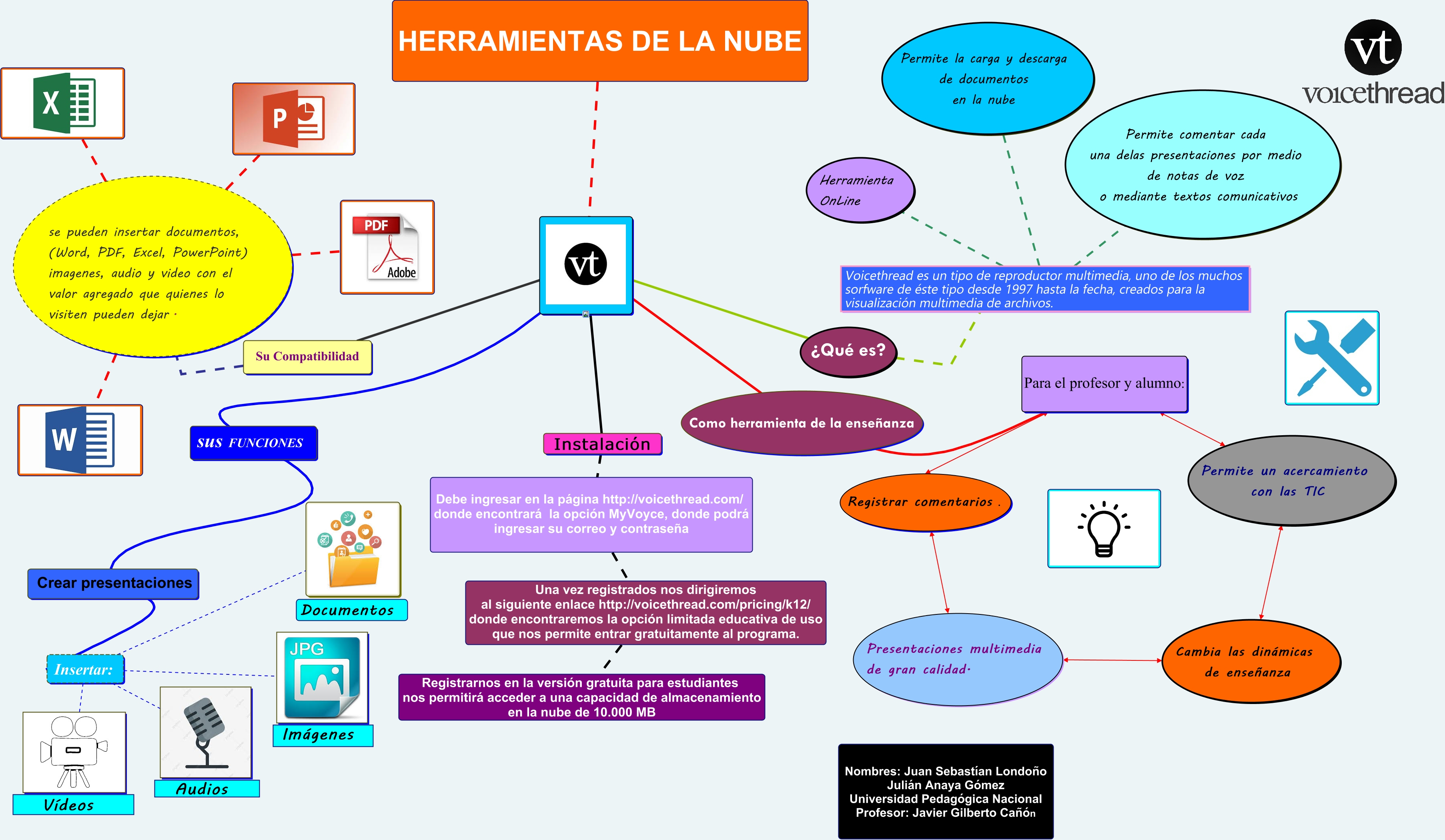 Este Cmap, tiene información relacionada con: TRABAJO DE LENGUAJES change, Insertar:, HERRAMIENTAS DE LA NUBE Como herramienta de la enseñanza, Instalación ¿Qué es?, Debe ingresar en la página http://voicethread.com/ donde encontrará la opción MyVoyce, donde podrá ingresar su correo y contraseña Una vez registrados nos dirigiremos al siguiente enlace http://voicethread.com/pricing/k12/ donde encontraremos la opción limitada educativa de uso que nos permite entrar gratuitamente al programa., Instalación Como herramienta de la enseñanza, HERRAMIENTAS DE LA NUBE ¿Qué es?, Insertar:, se pueden insertar documentos, (Word, PDF, Excel, PowerPoint) imagenes, audio y video con el valor agregado que quienes lo visiten pueden dejar., Instalación Su Compatibilidad, se pueden insertar documentos, (Word, PDF, Excel, PowerPoint) imagenes, audio y video con el valor agregado que quienes lo visiten pueden dejar., ¿Qué es? Voicethread es un tipo de reproductor multimedia, uno de los muchos sorfware de éste tipo desde 1997 hasta la fecha, creados para la visualización multimedia de archivos., Como herramienta de la enseñanza Para el profesor y alumno: Registrar comentarios., se pueden insertar documentos, (Word, PDF, Excel, PowerPoint) imagenes, audio y video con el valor agregado que quienes lo visiten pueden dejar., HERRAMIENTAS DE LA NUBE susFUNCIONES, Crear presentaciones Insertar:, Insertar:, Presentaciones multimedia de gran calidad. Cambia las dinámicas de enseñanza, Como herramienta de la enseñanza Para el profesor y alumno: Permite un acercamiento con las TIC, Una vez registrados nos dirigiremos al siguiente enlace http://voicethread.com/pricing/k12/ donde encontraremos la opción limitada educativa de uso que nos permite entrar gratuitamente al programa. Registrarnos en la versión gratuita para estudiantes nos permitirá acceder a una capacidad de almacenamiento en la nube de 10.000 MB, Voicethread es un tipo de reproductor multimedia, uno de los muchos sorfware de éste tipo desde 1997 hasta la fecha, creados para la visualización multimedia de archivos. Permite comentar cada una delas presentaciones por medio de notas de voz o mediante textos comunicativos